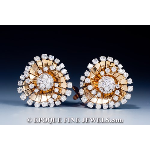 Set with 77 old European cut diamonds in a platinum `mille grains` setting.