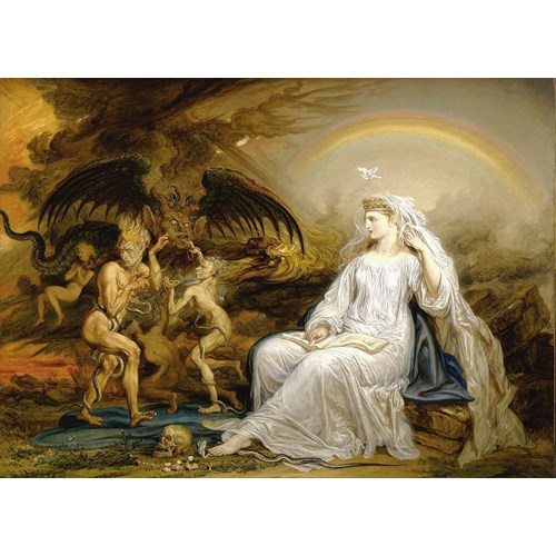 Abandoning his earlier concerns with industrialization and the modern world, Frédéric here used lighter, silvery-blue colors to paint a cosmic, supernatural theme. Less melancholic than Khnopff or directly erotic than Rops, Frédéric’s Aurora is fascinating and provocative. Mingling attraction with repulsion, a comparison can be made to 16th and 17th century Northern European Mannerists paintings by Spranger, Wtewael and Goltzius; to the 20th century Belgian, Magritte; or to Dalí and the Surrealist.