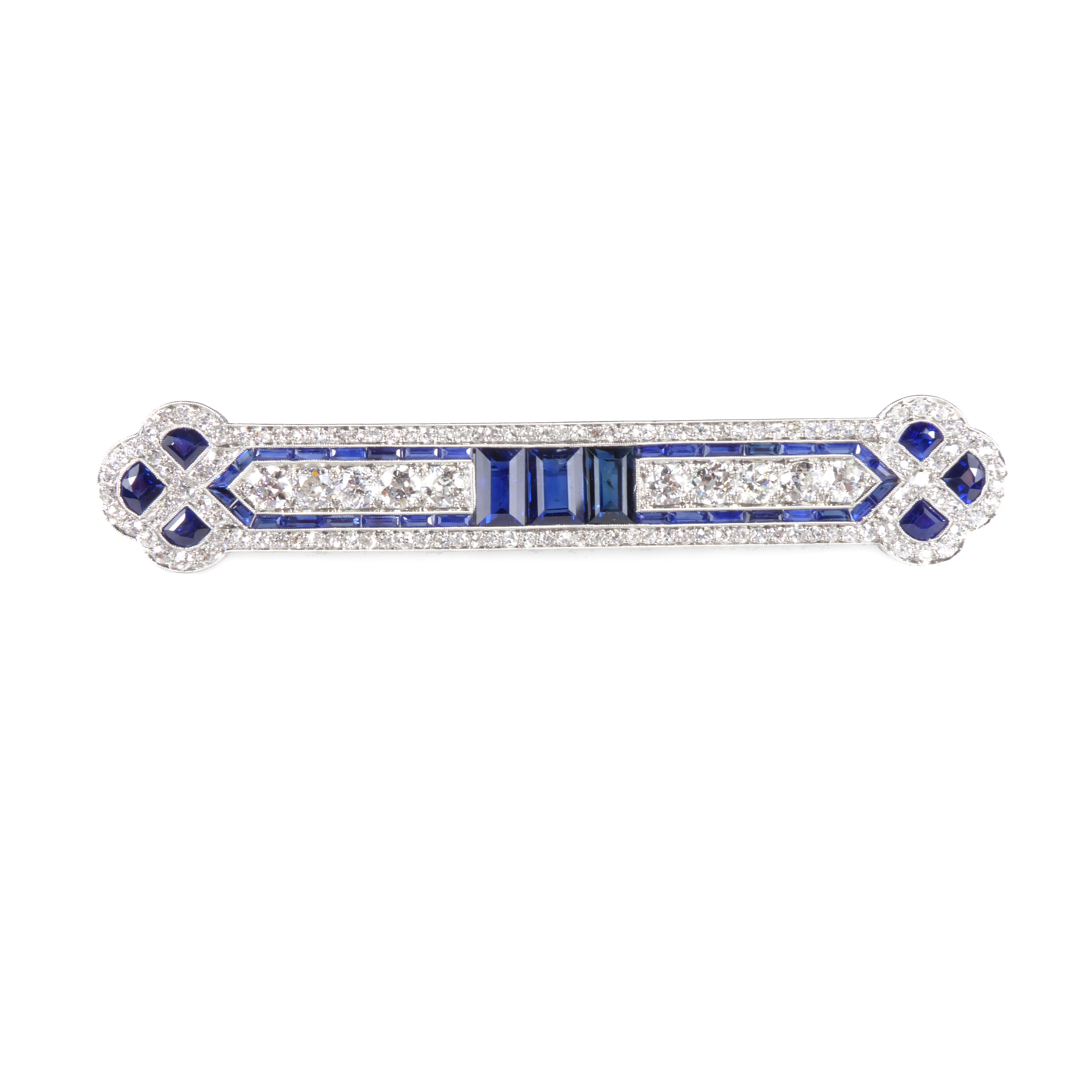 Set with cushion cut sapphires, rose cut diamond points in between, to a scroll carved gallery and shoulders, mounted in gold.