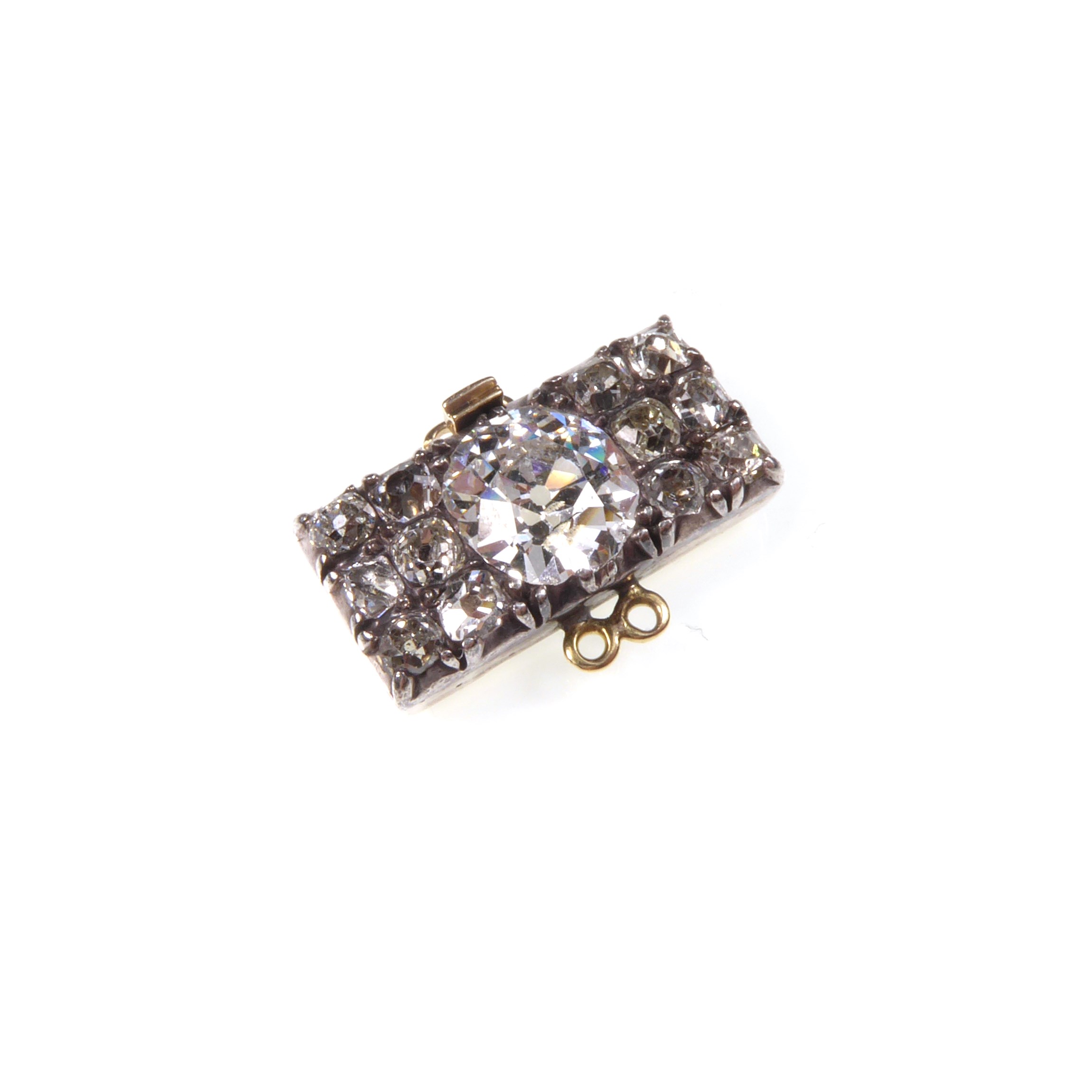 Antique mauve and white enamel, pearl and 14ct gold pansy brooch by Hedges