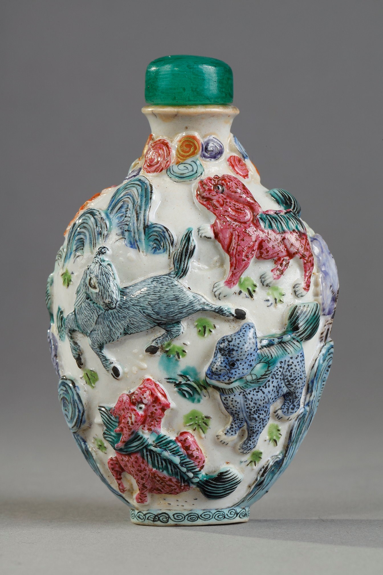 Chinese blue and white porcelain plate with two long Eliza in a garden in front of a censer