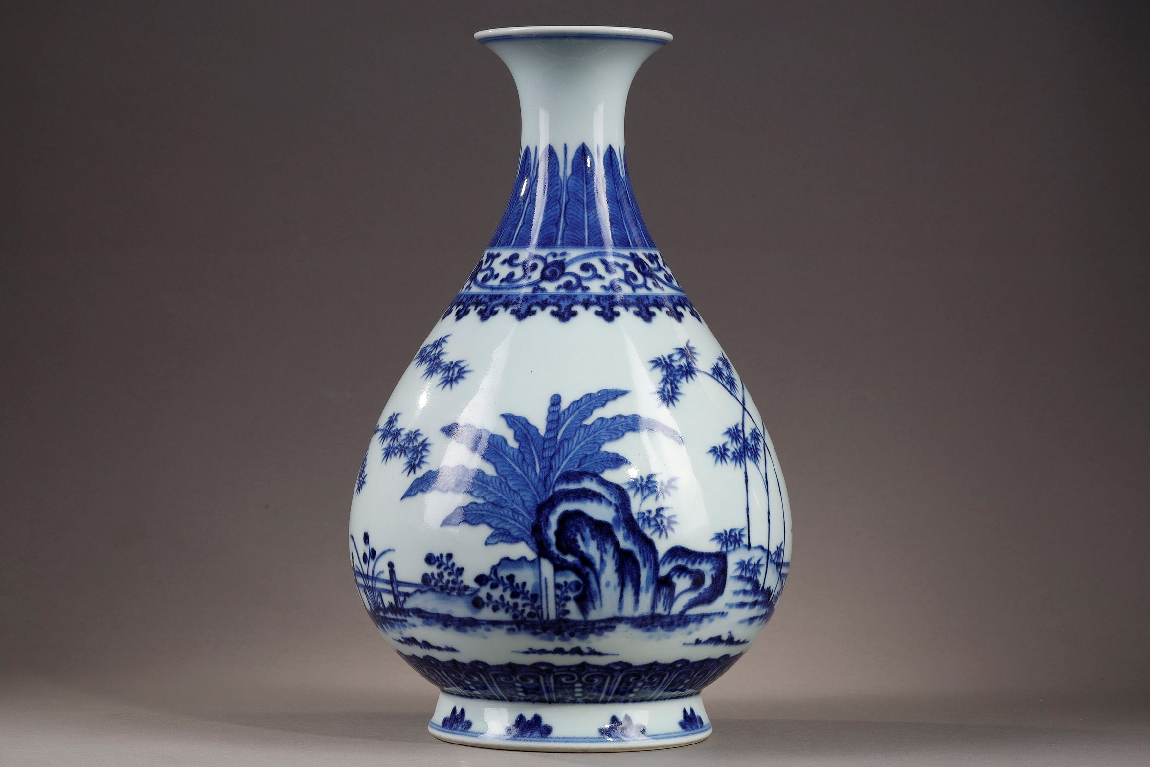 yuhuchunping shape vase - Bleu Blanc porcelain - Imperial Jingdezhen Imperial kilns - Qianlong Seal Mark and period Inspired by the beginning of the Ming period . The idea was to recall the glorious ancient and venerated China. This type of vase was made for each Qing emperor and bore the mark of the emperor in place