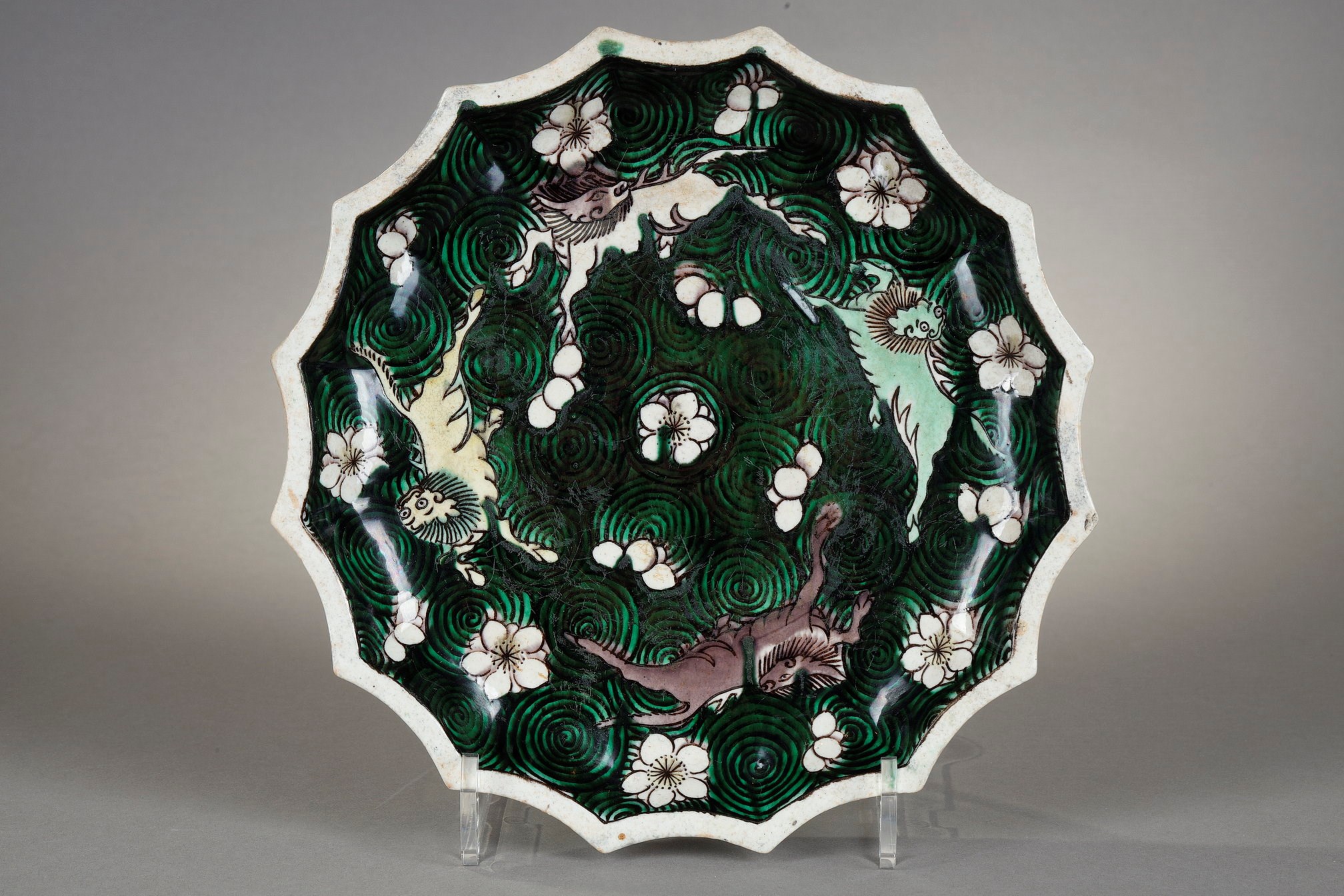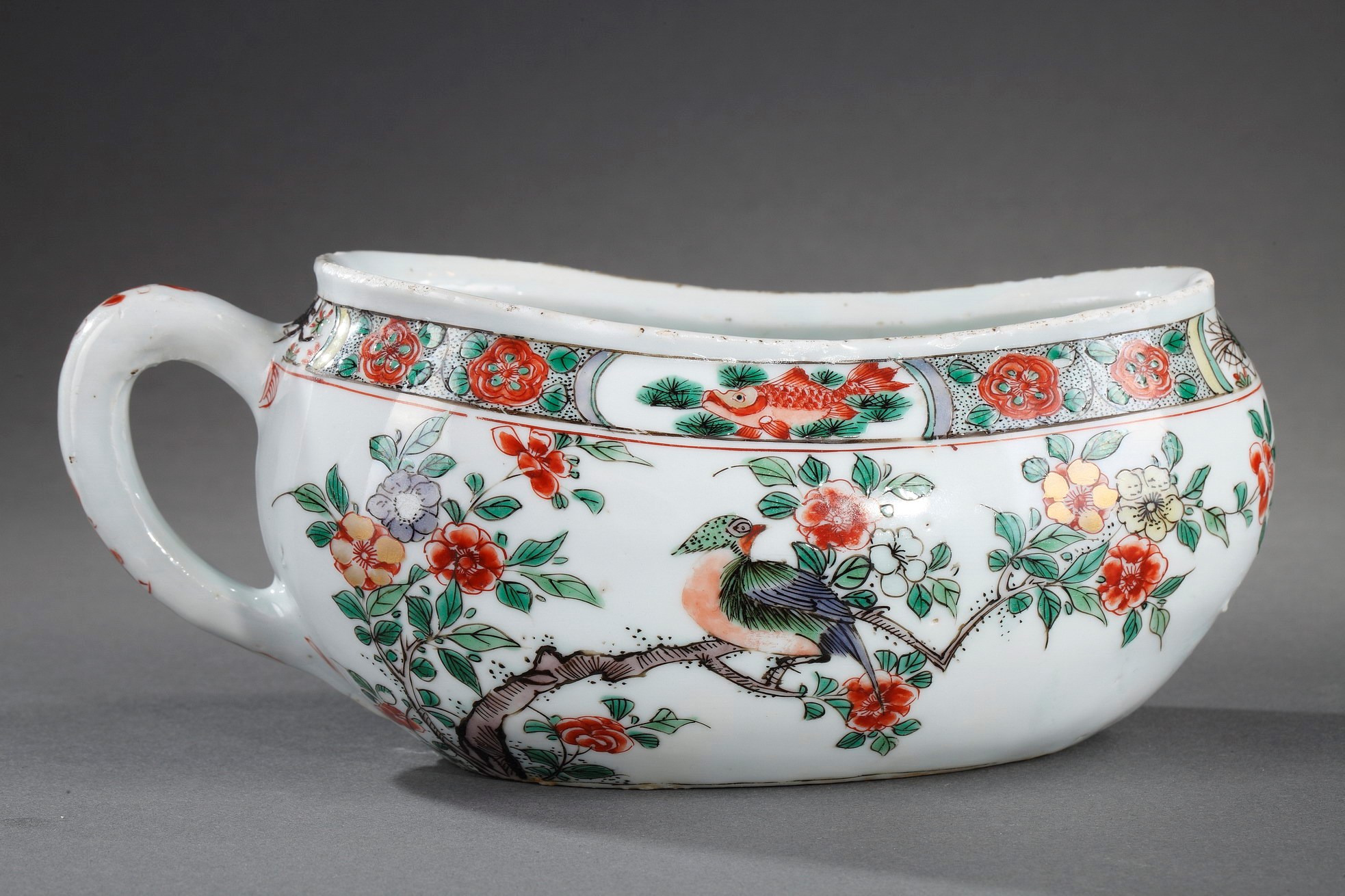 Dining box has two compartments in blue powder porcelain enamelled gold with an immortal on a qilin and Buddhist objects (gold as usually worn)