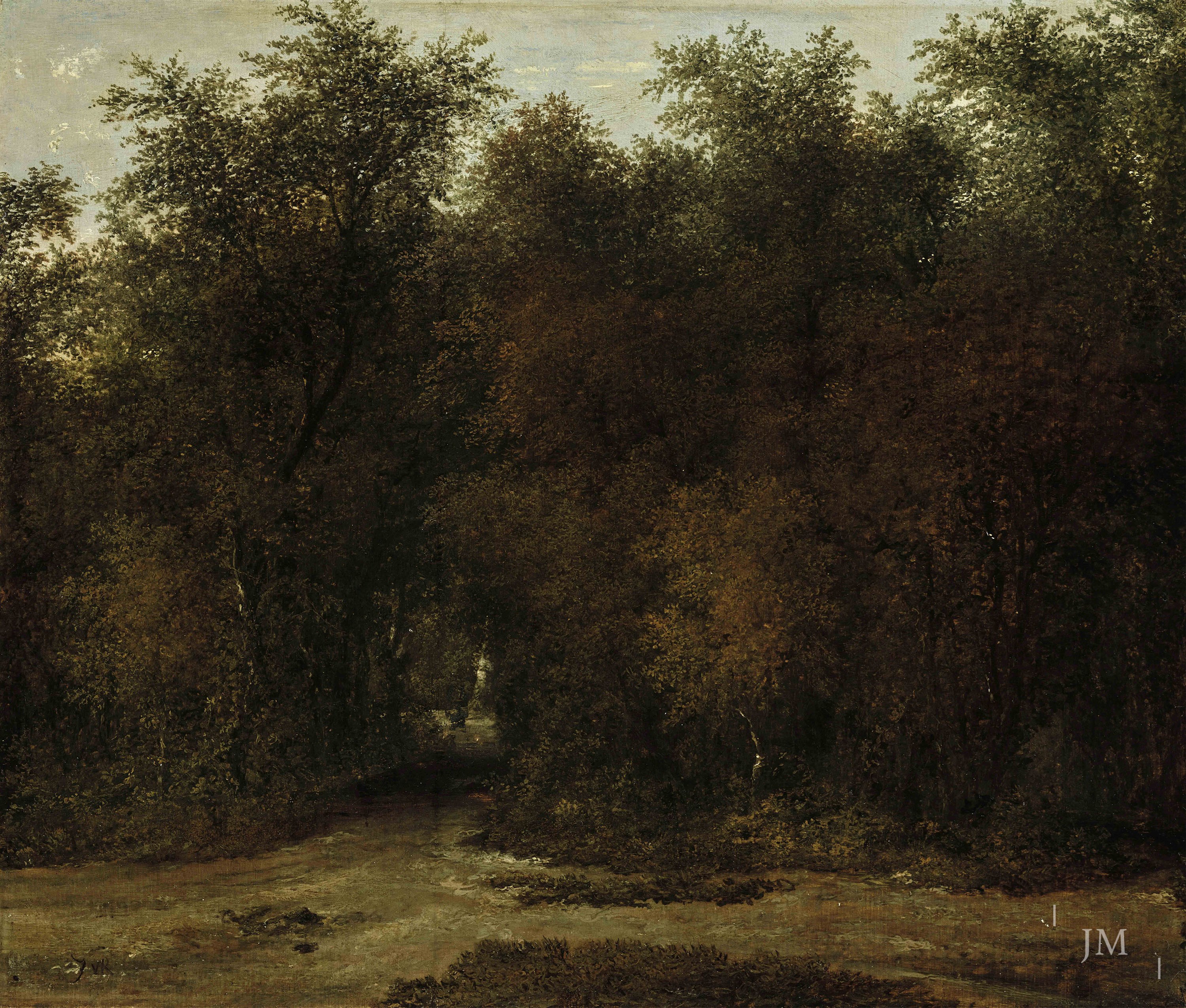 This fine study in oils comes from the studio sale of the artist’s works held a year after Calame’s death in Paris’s Hôtel Drouot. The sale was conducted over two days and included 650 lots, mostly oil studies with two hundred or so drawings. It bears repeating that Calame never sold his sketches in his lifetime but the sheer quantity put up for sale in the Drouot reveals to what extent he was devoted to working en plein air. This is one of many known compositions by Calame painted near the cliffs at Seelisberg. The three peaks dominating the skyline are, from the left, the Gitschen, then Brunnistock and the snow-capped Urirotstock which is visible from many vantage points on the pristine ‘Lake of the Four Cantons’, (Vierwaldstättersee). Calame regarded this region as the spiritual and historical centre of his native land and from preparatory views such as this, he made more formal commissions. A few large format Urirotstock paintings now hang in Swiss museums such as the Kunstmuseum in Basel and Winterthur.