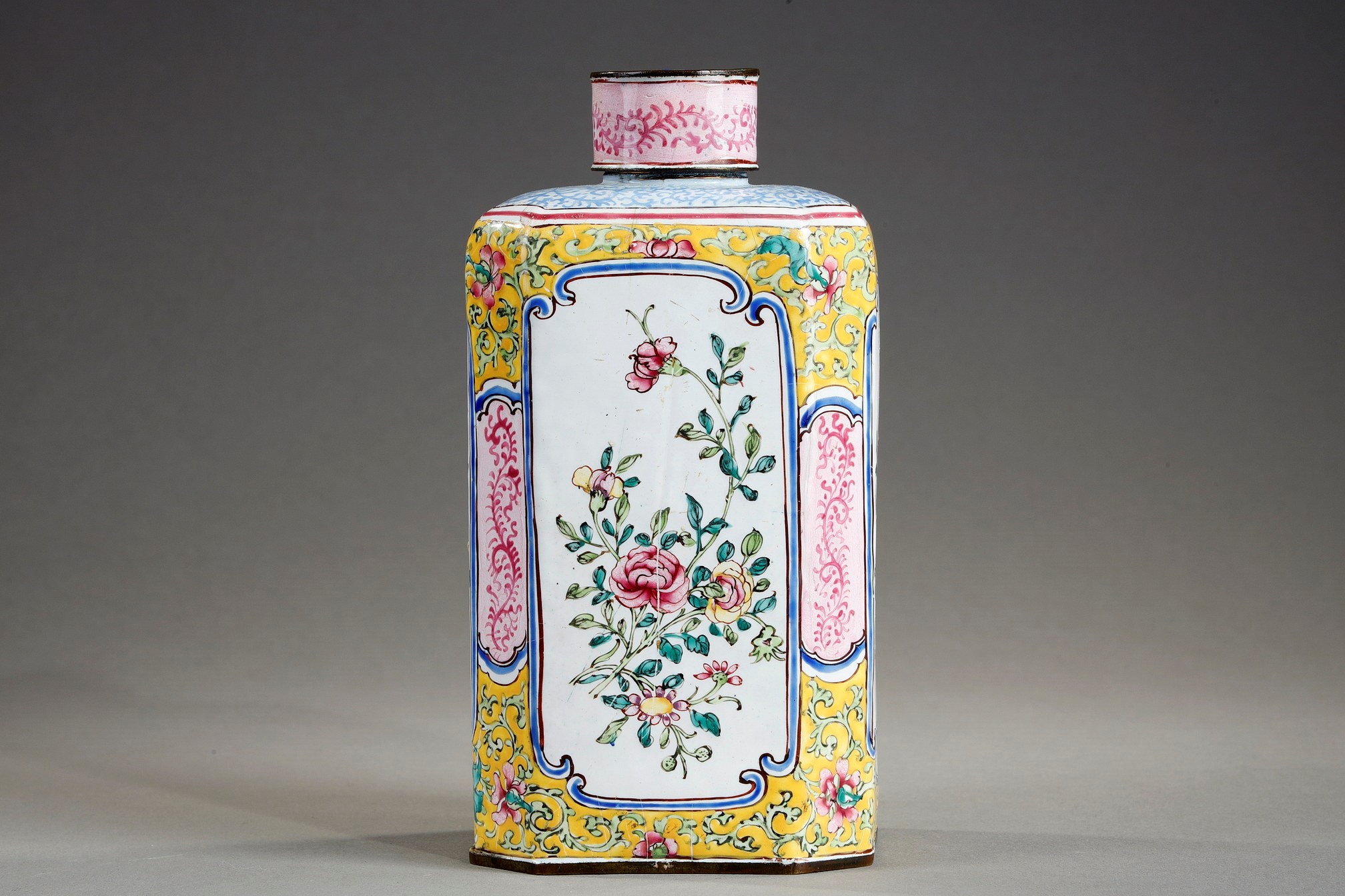 Pair of quadrangular porcelain vases "Famille Verte " decorated with kilins and birds on backgrounds of landscapes and butterflies - China Kangxi period 1662/1722 High 32cm