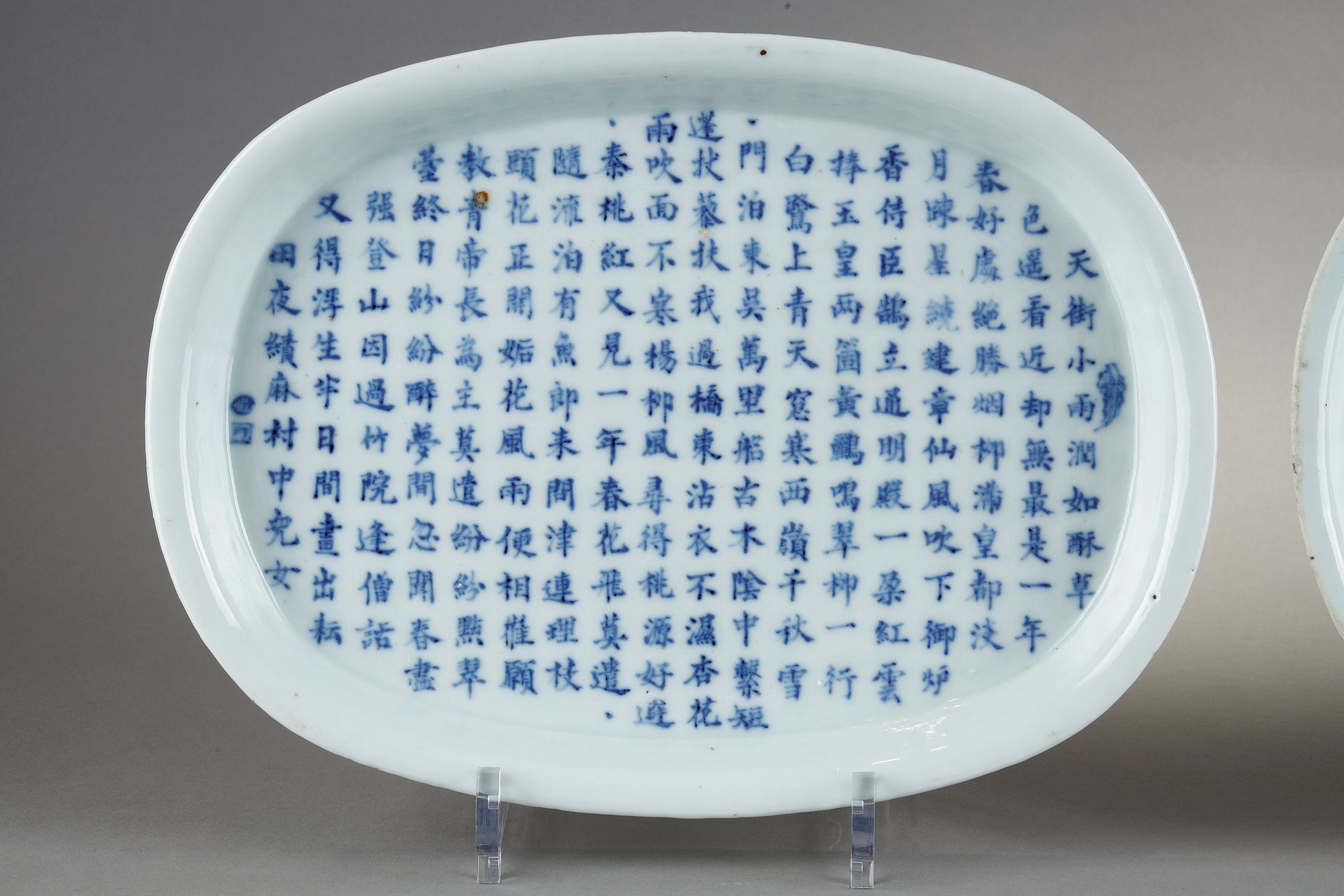 Snuff bottle porcelain ecusson shape decorated with characters in landscapes - Marque qianlong China 1780/1850