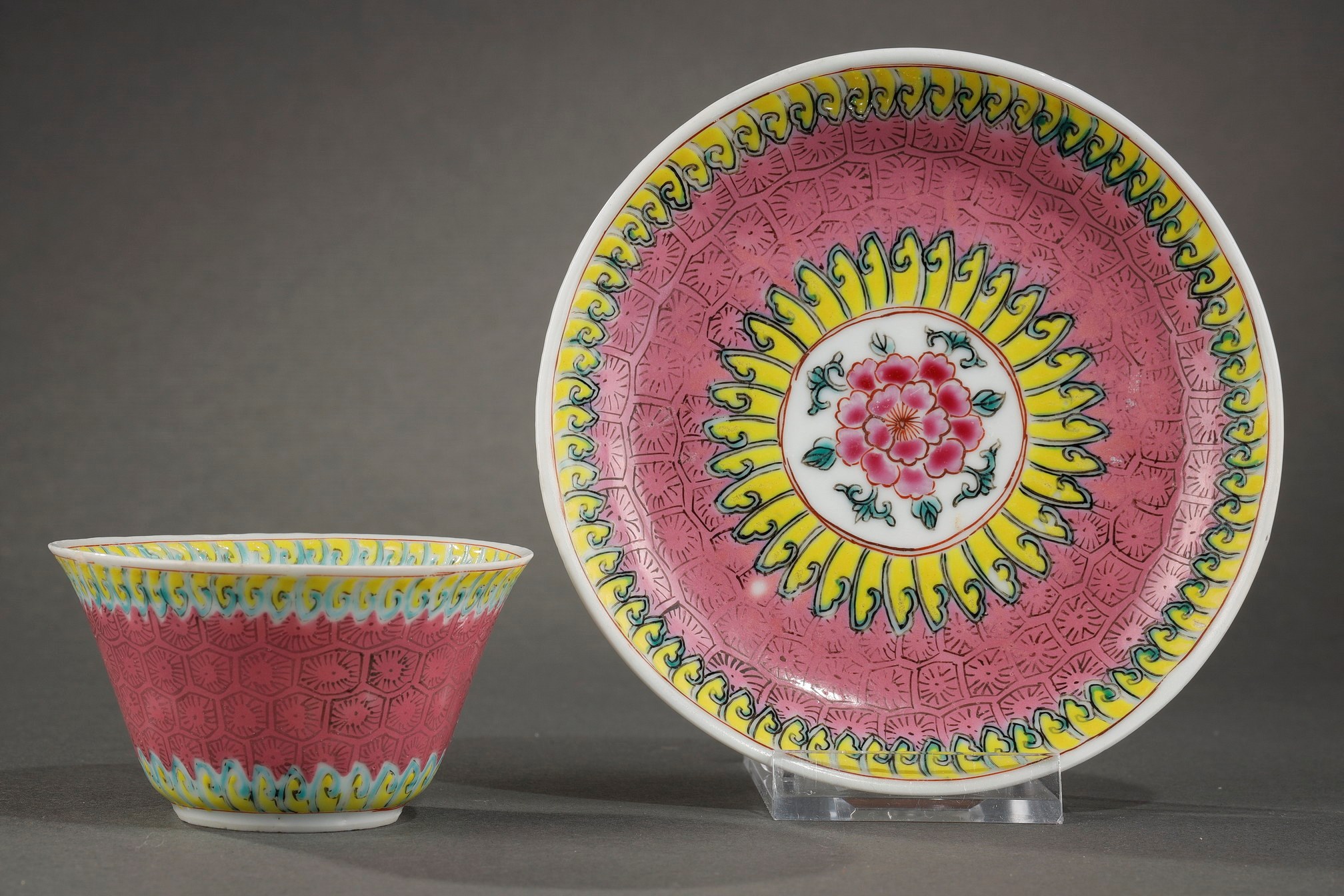 rare hexagonal jug called puzzle or surprise in porcelain of the Famille Verte has decoration of mythical animals flowers and precious objects - China Kangxi Period 1662/1722