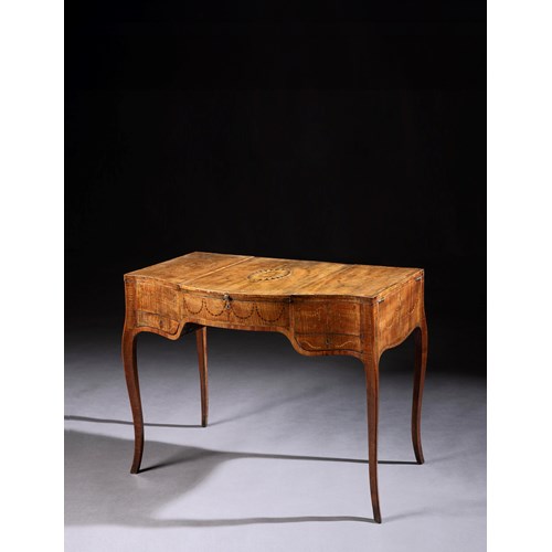 The chairs' swags to the tops of the legs directly copy fashionable Louis XVI furniture and features as ormolu mounts on documented examples of Linnell furniture, notably games tables supplied to both the Duke of Northumberland for Alnwick Castle and Viscount Scarsdale for Kedleston Hall. The fluting of the seat-rails and bell-flower carving is mirrored in the marquetry designs found on Linnell's case furniture of this period.