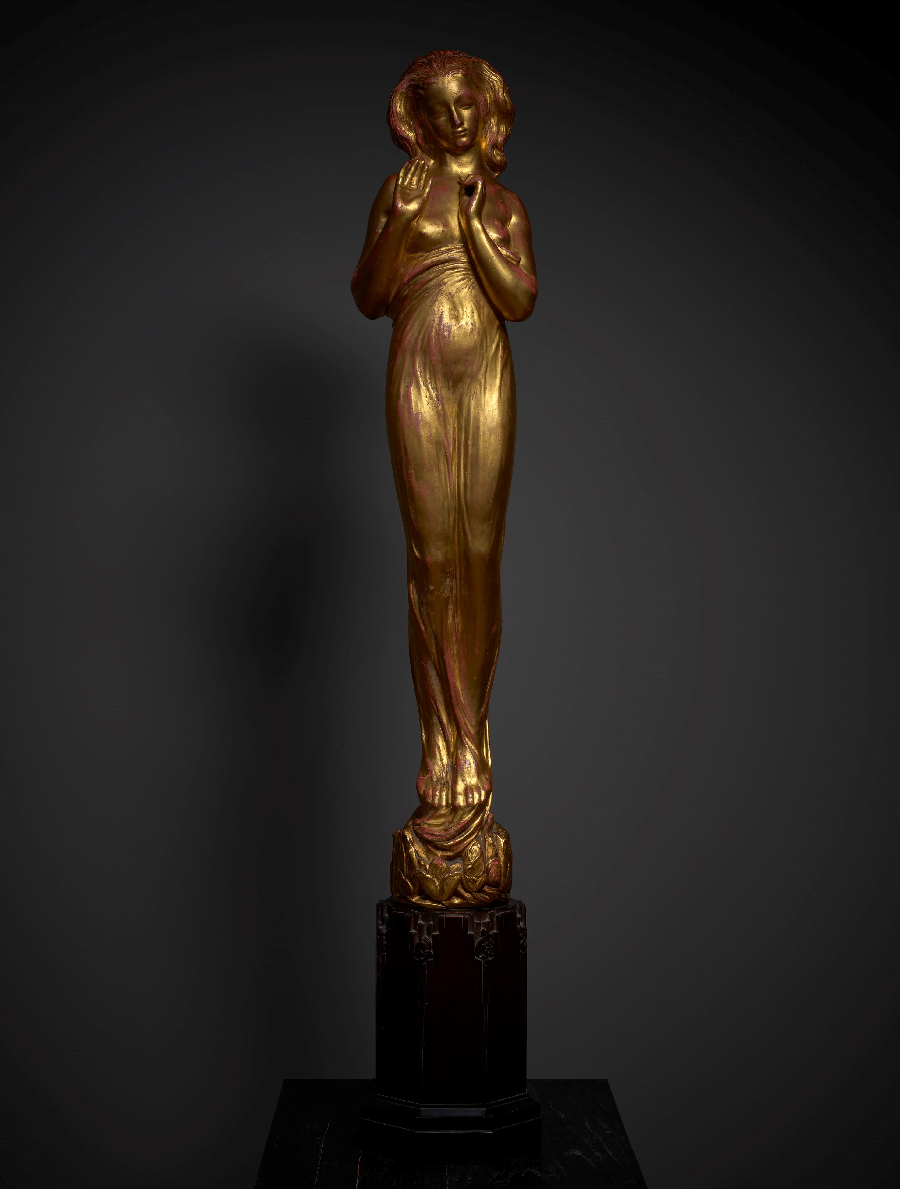 gilt copper water stoup exemplifies the artist's expertise in draftsmanship, form and