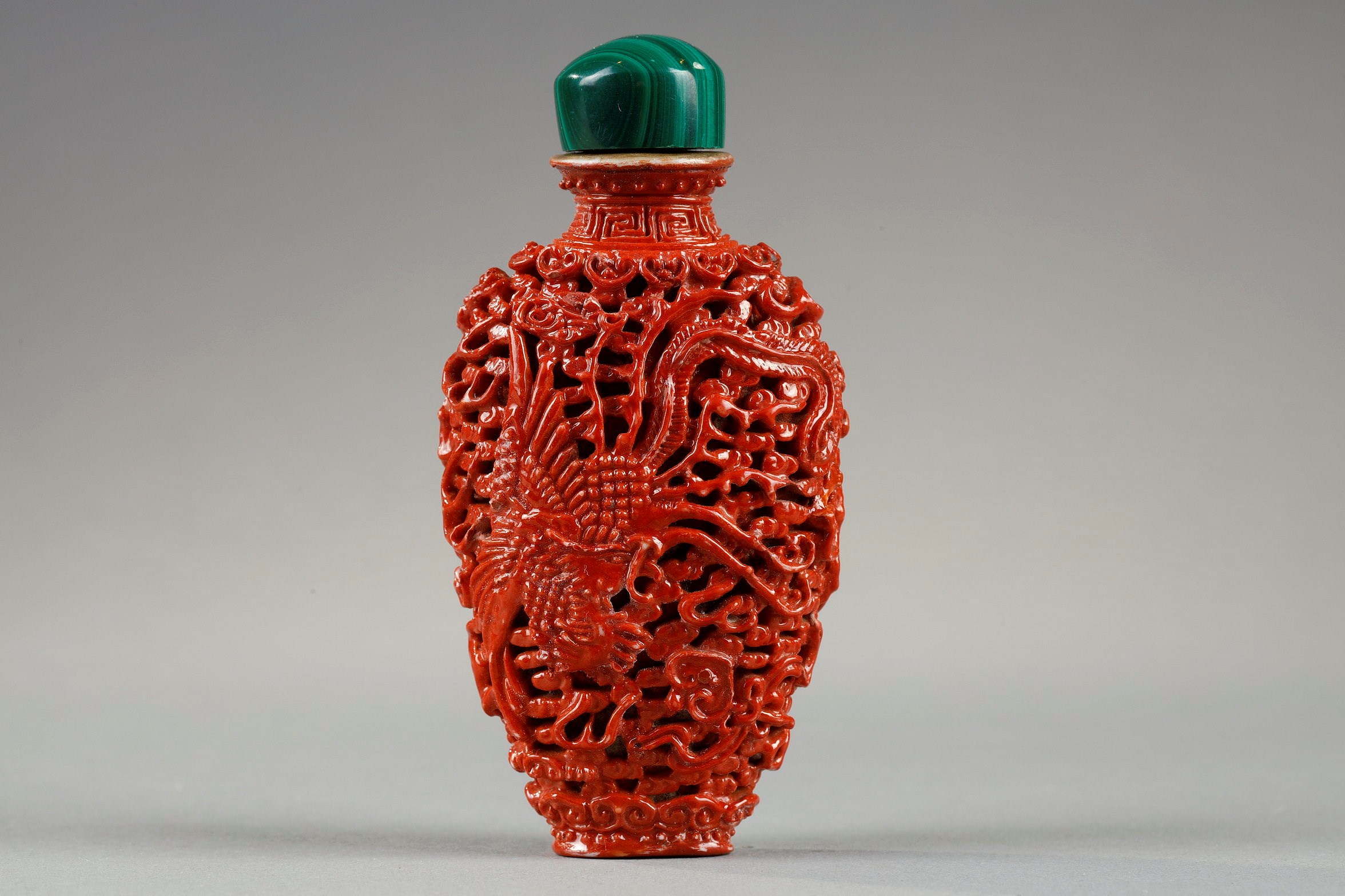 snuff bottle in amethyst carved pagodas in landscapes China 19th century