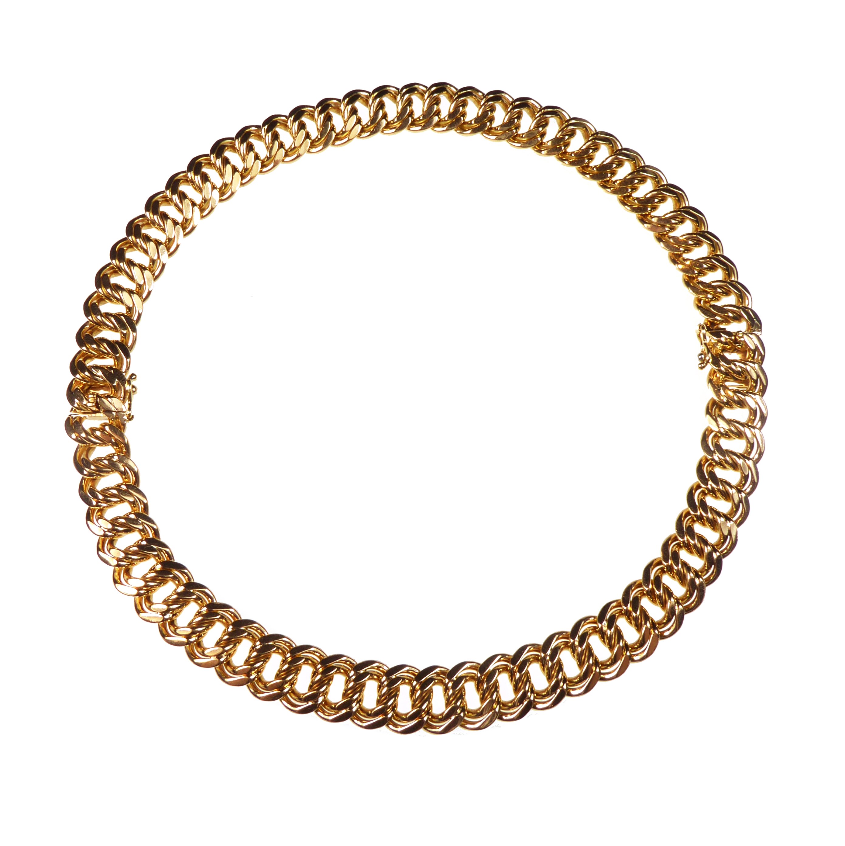 Mid-20th century 18ct yellow gold double curblink collar necklace by Chaumet, Paris, with London import hallmarks for 1957, converting to a pair of bracelets,