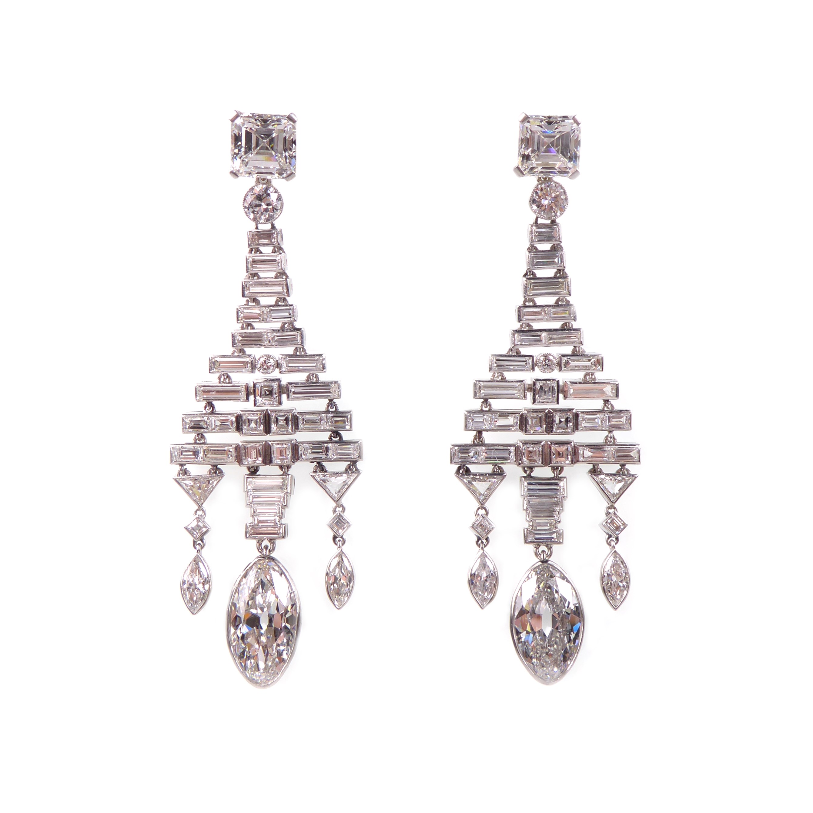 Pair of Art Deco jadeite, diamond and pearl pendant earrings by Cartier, New York c.1925,