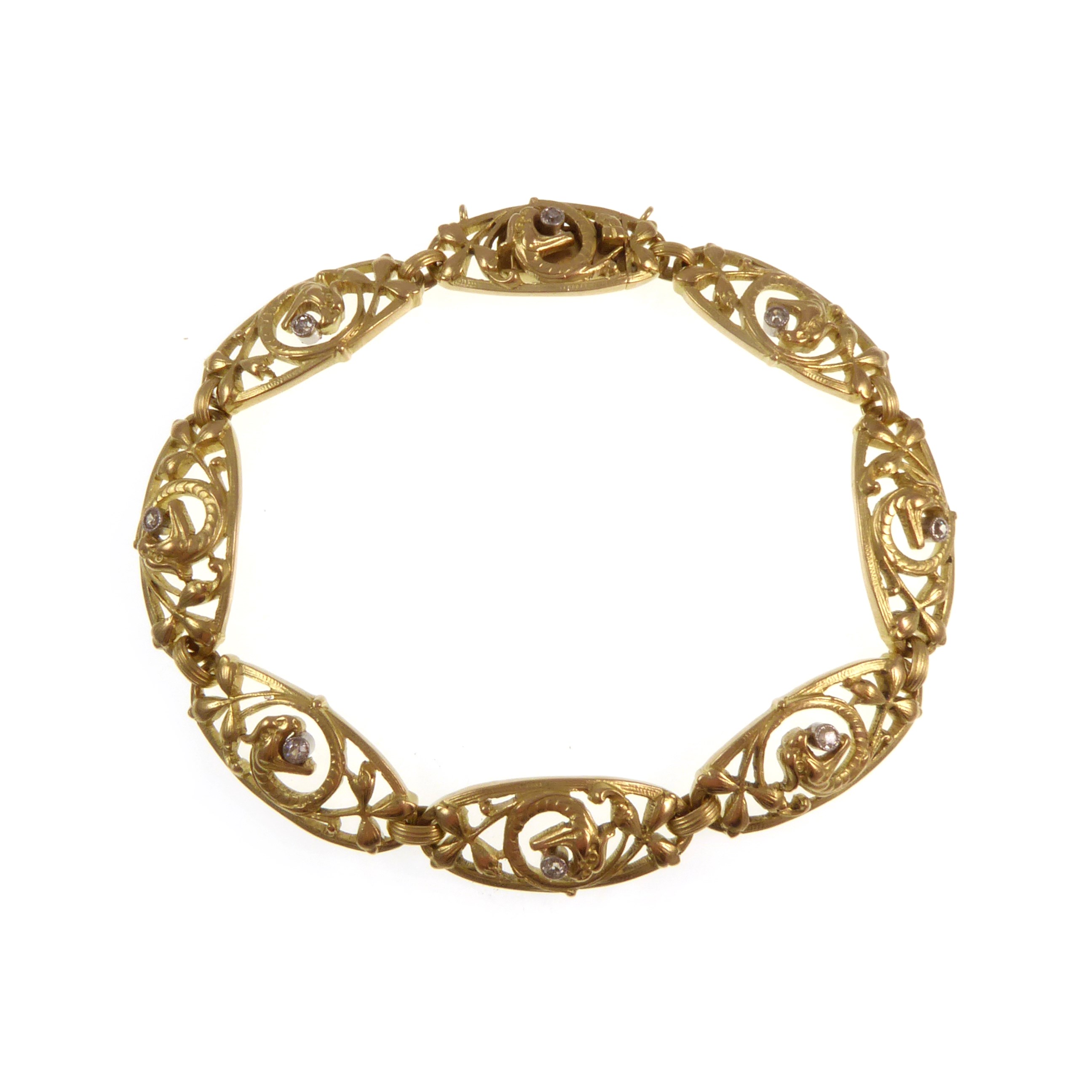 Early 20th century cabochon emerald and diamond collet bracelet possibly by Marcus & Co., American c.1905