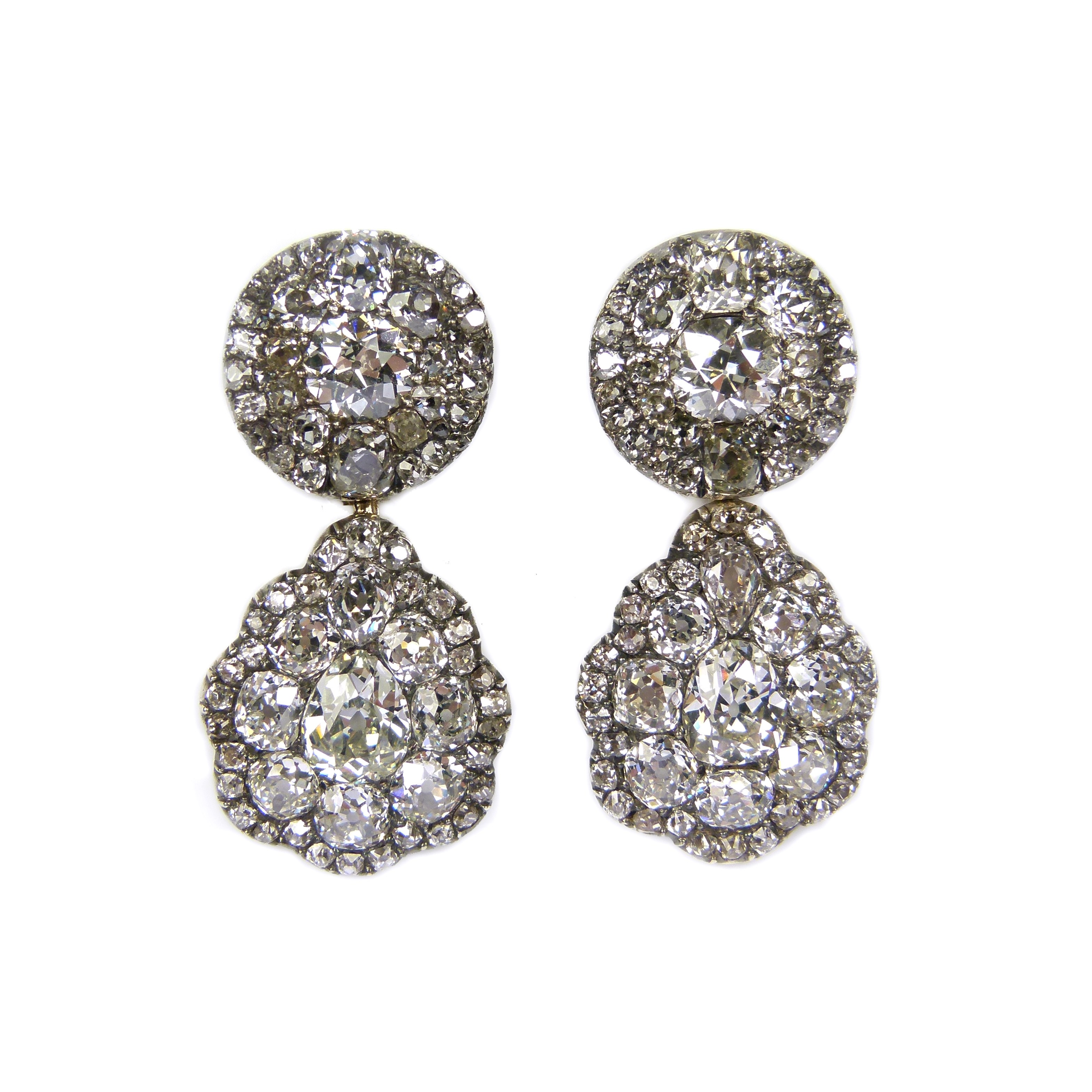 Pair of 18th century diamond cluster top and drop earrings, English c.1780,