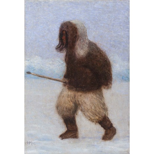 A Japanese Ivory Netsuke of a Man Seated Wearing a Mon Decorated Kimono Clasping with Both Hands his Treasured Saké Gourd