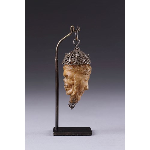 Literature: Shishi are mythical lion dogs of Chinese origin known in Japan as ‘Komainu’ and in Okinawa as ‘ShÄ«sÄ’. They are believed to have the power to repel evil and are now habitually used to guard the gates and doors of temples and domestic houses, although they have only been used outdoors since the 14th century. They are really lions and not dogs, and probably came to Japan from India where they had taken up residence from China via the Silk road. They came from India together with the Buddhist faith in which the lion is the symbolic protector of the dharma, the teachings of the Buddha. Eventually the lions also became the guardians of the entrance to Japanese Shinto shrines and Buddhist temples. As a netsuke the shishi has an amuletic role in protecting its owner.