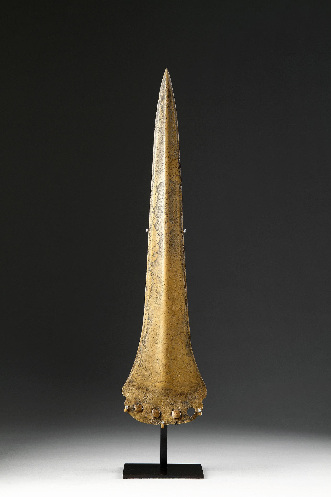 Literature: The favourite weapon of warriors on the Tongan Islands was the ironwood two-handed club whose primary use was to kill people, but sometimes it would be used to kill pigs and occasionally for ceremonial purposes. It was the simple European nail which came into the hands of Tongan carvers from Captain Cook’s ships in 1773 that brought about a remarkable change in the surface decoration of the ‘apa’apai’. Initially Cook had noticed on his second voyage the partial surface engraving on the clubs. However, post contact the clubs took on a more elaborate surface decoration including inlays of whale ivory that clearly showed European metal tools had begun to supersede the traditional tools made from stone, bone or shark’s teeth. The millimetre-accurate geometric regularity of such clubs reveals a sophisticated system of mathematical calculation achieved using pieces of coconut fibre cordage which in turn illustrates the amazing creativity of the Polynesian artist craftsman.