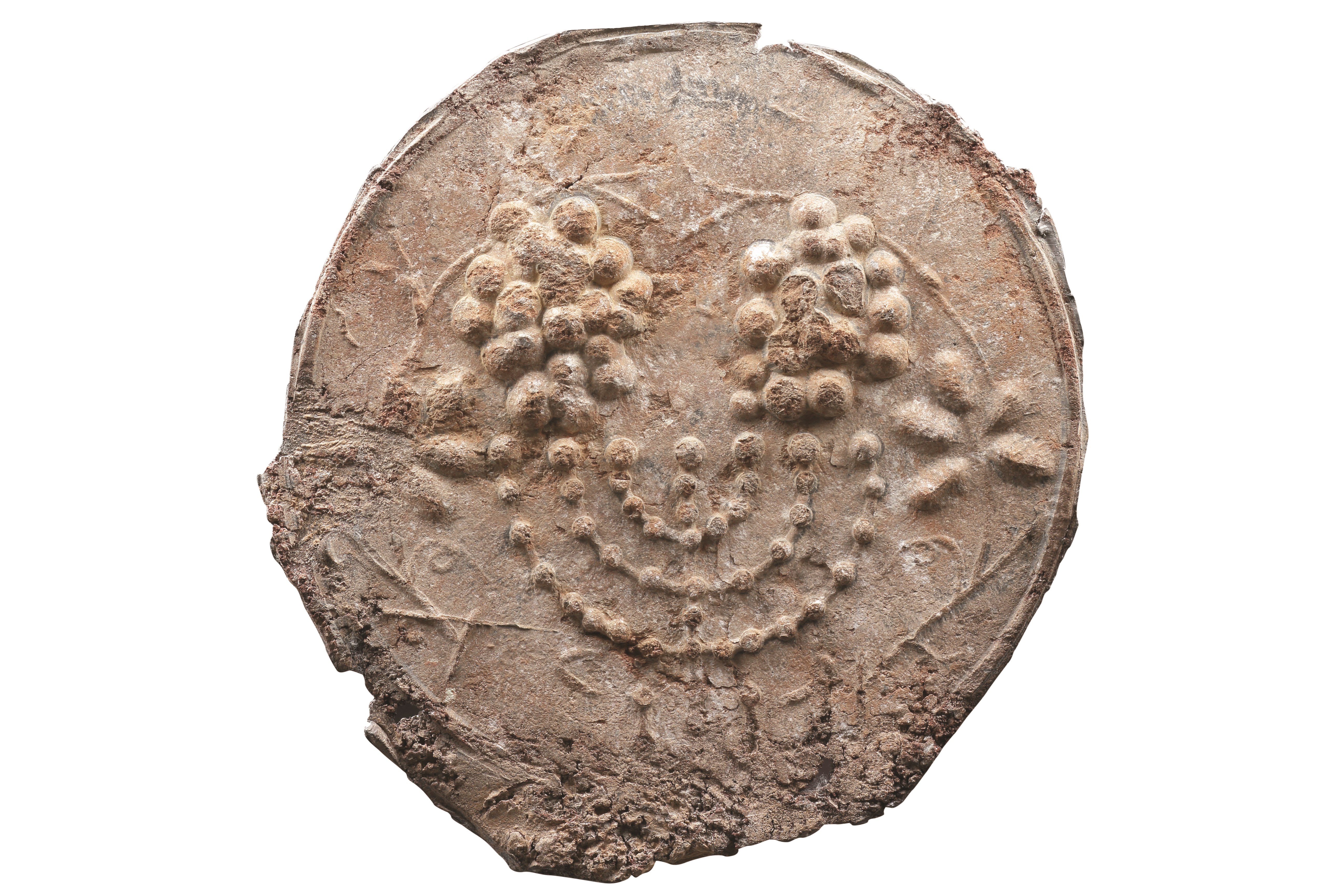 Very Rare Medieval English Alabaster Tomb Sculpture of a Hound Dog Seated on a Carved Mail Ground