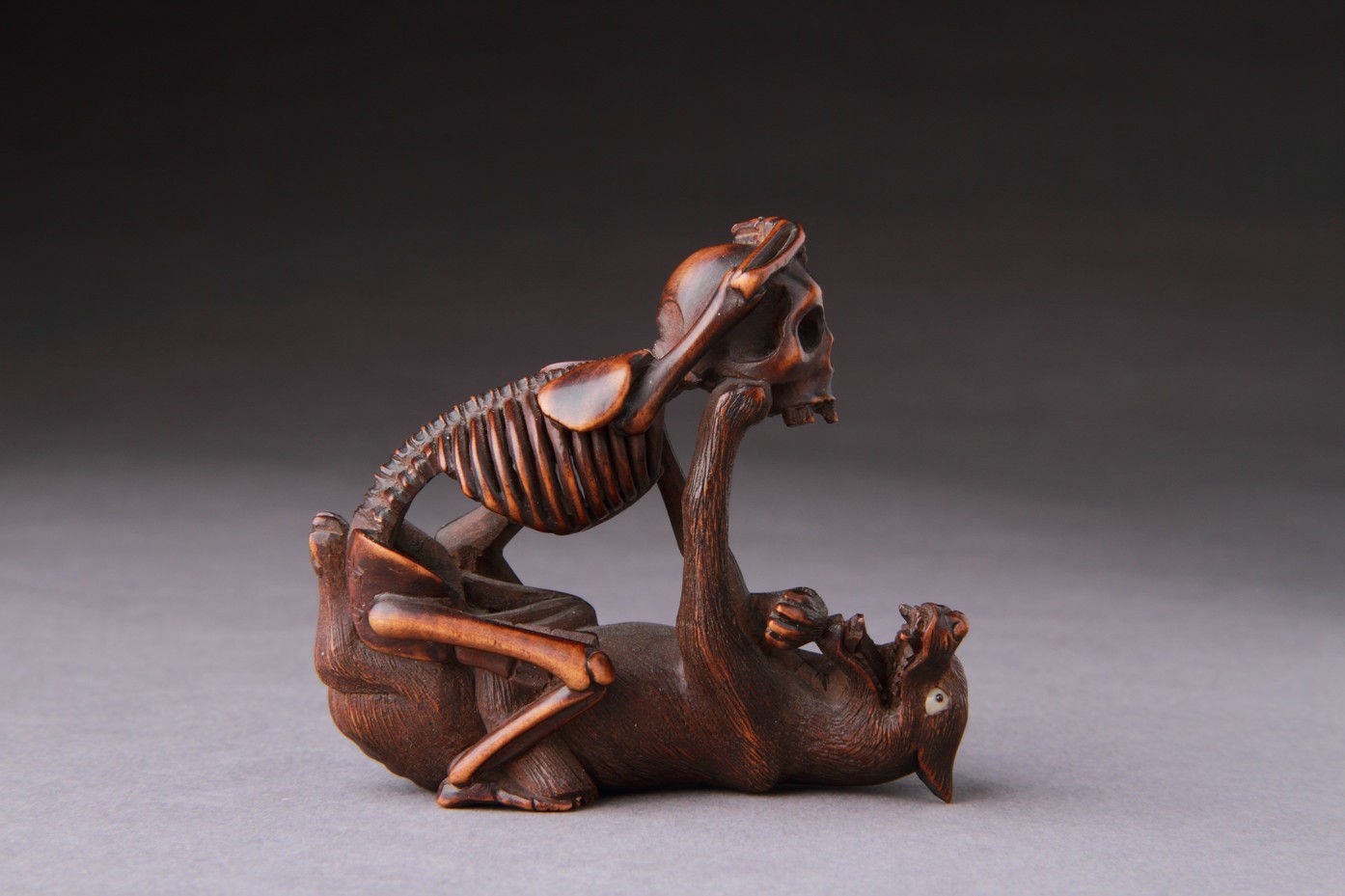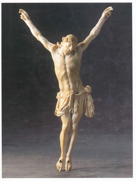 The powerfully drawn head and shoulders of the Bignor figure are covered with a British Celtic hooded cloak well known in the 3rd century AD throughout the Roman Empire for its thickness and warmth. Mentioned in Diocletian’s edict of prices (AD301) it commanded a higher price than any other similar garment. The figure holds a bare bough over his left shoulder and the cold effect has been skilfully obtained by the use of the black, brown and blue grey tesserae of the figure on the white background. The decorative effect of this carefully constructed Regency glass replica is as striking and great as that of the original ancient mosaic.