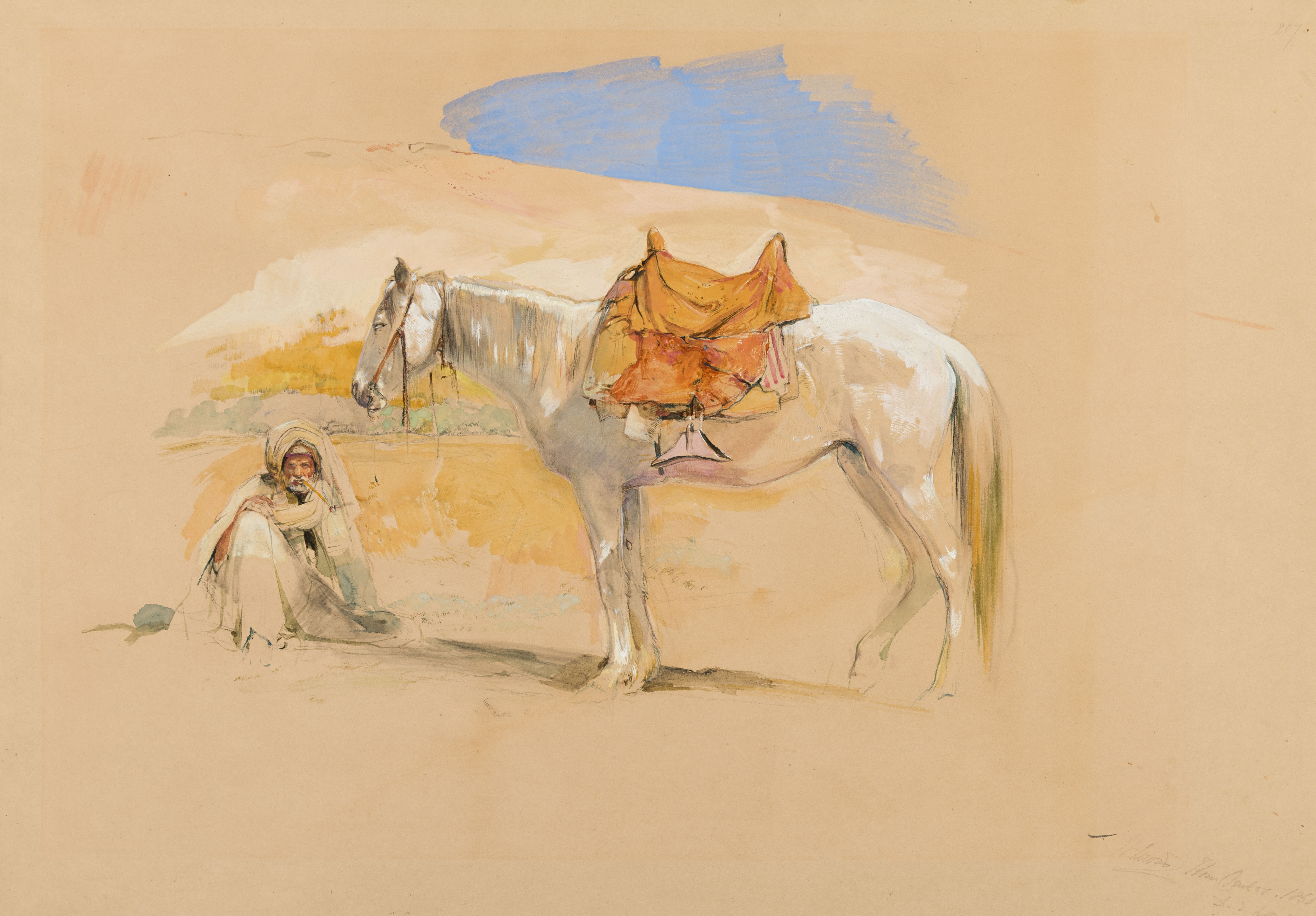 The scholar Ann Dumas has noted the possible influence of Degas’s friend, the Italian artist Giuseppe de Nittis, on his pastel landscapes in general, and on the present sheet in particular: ‘One of the most fascinating connections between Degas and De Nittis is to be found, surprisingly, not in the urban world at all, but in landscapes. De Nittis’s landscapes are a somewhat neglected aspect of his work that reveals a visual power quite different from his more familiar views of fashionable Paris. Similarly, Degas’s landscapes are a sporadic and a less familiar dimension of his work. In his remarkable series of monotype and pastel landscapes of 1890, the mysterious textures and veils of colour, in which topography blends with landscapes of the mind, suggests comparisons with De Nittis’s misty, mountain views. Degas had responded to the Neapolitan scenery in his youth, a fact that perhaps made him receptive to his friend’s Italian landscapes. At a sale after De Nittis’s death in 1884 Degas bought one of his Italian mountain views, and acquired another in the 1890s. He surely had De Nittis’s views of Vesuvius in mind when, in the 1890s, he produced his own monotype and pastel image of the volcano.’