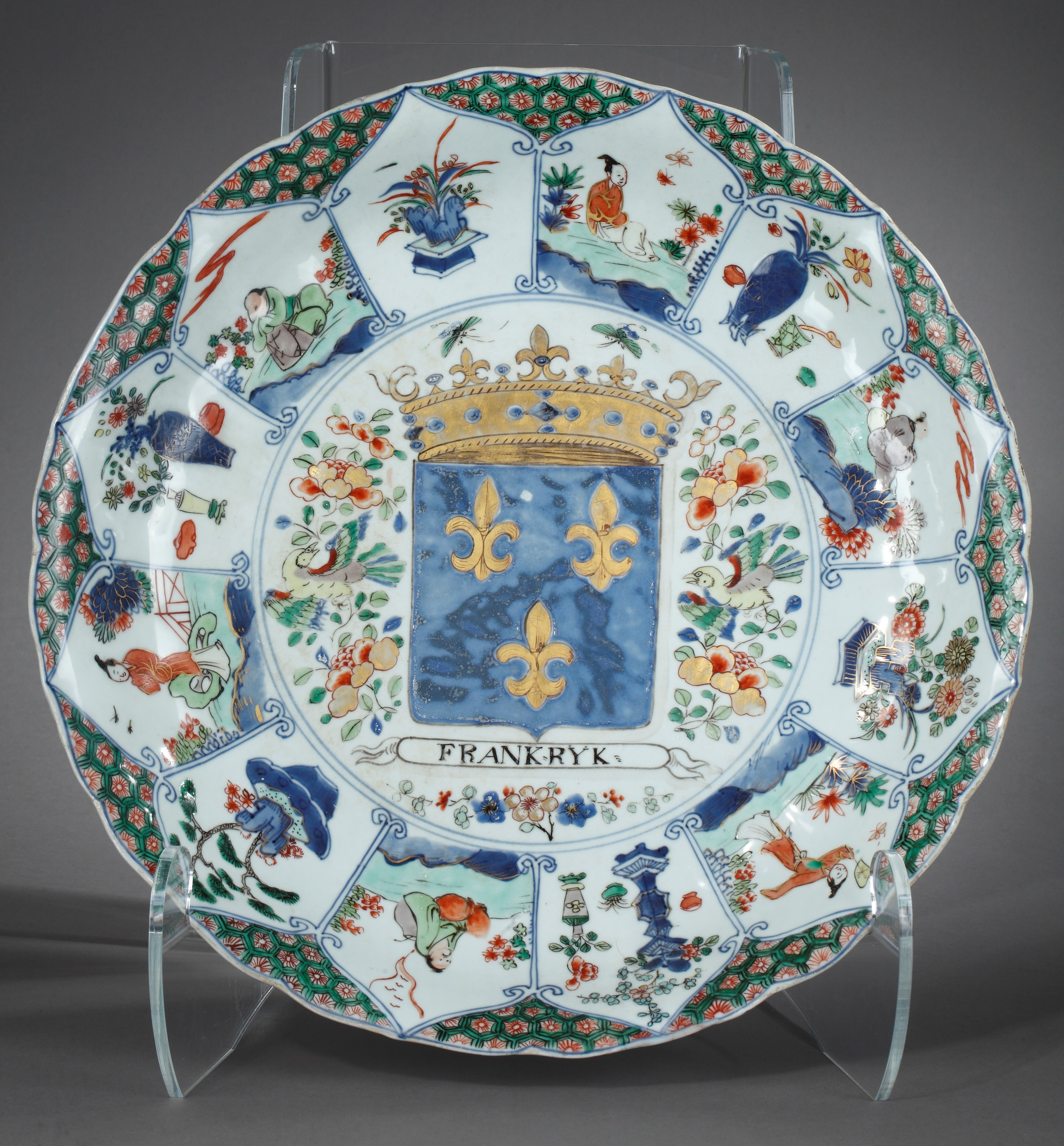 Rare porcelain large dish with French Armorial -Royaume de France-Kangxi period