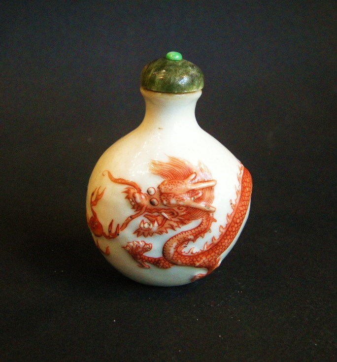 Red Overlay snuff bottle sculpted with horse in each face-Attributed Imperial workshops Bejing-Qianlong period 1736/1795 SOLD