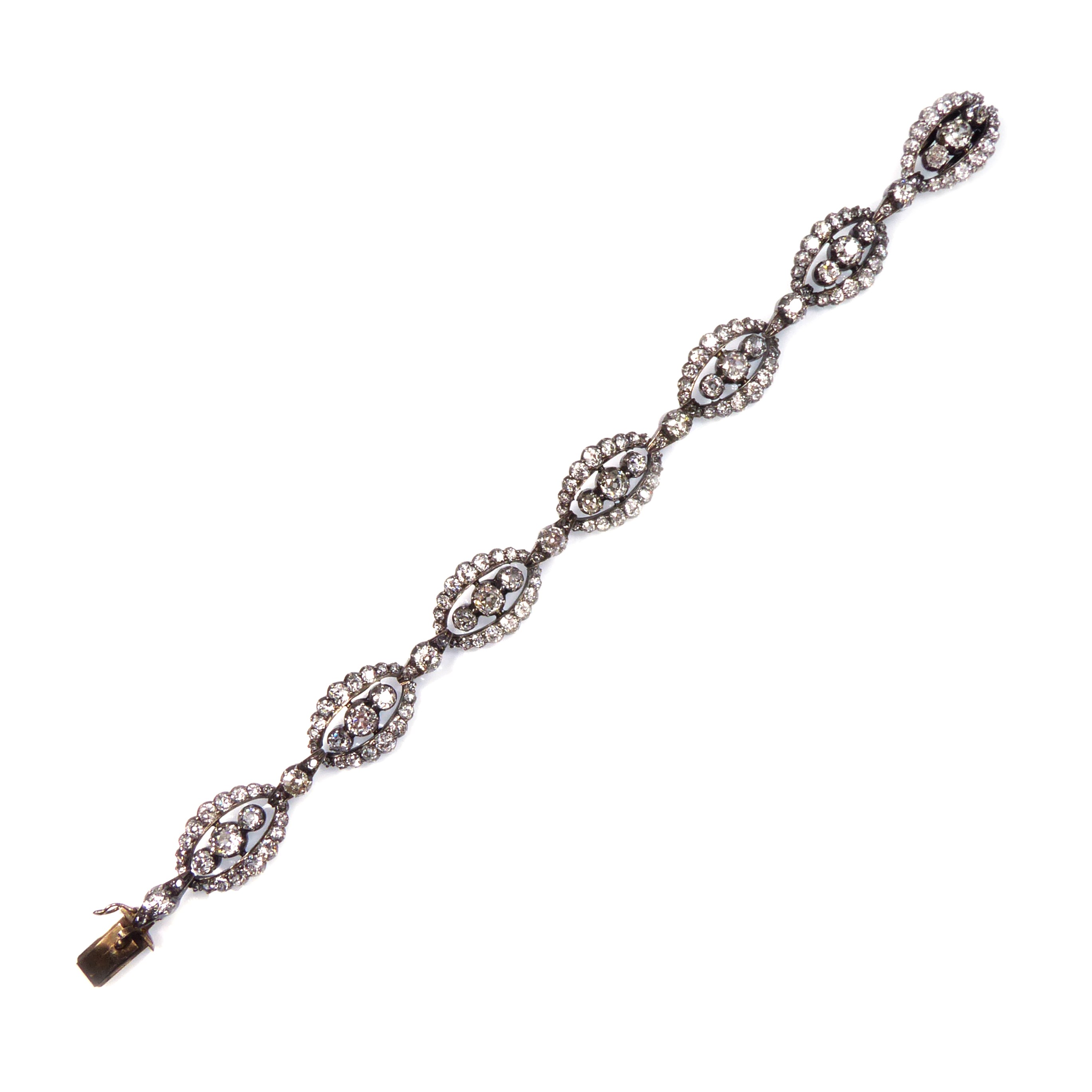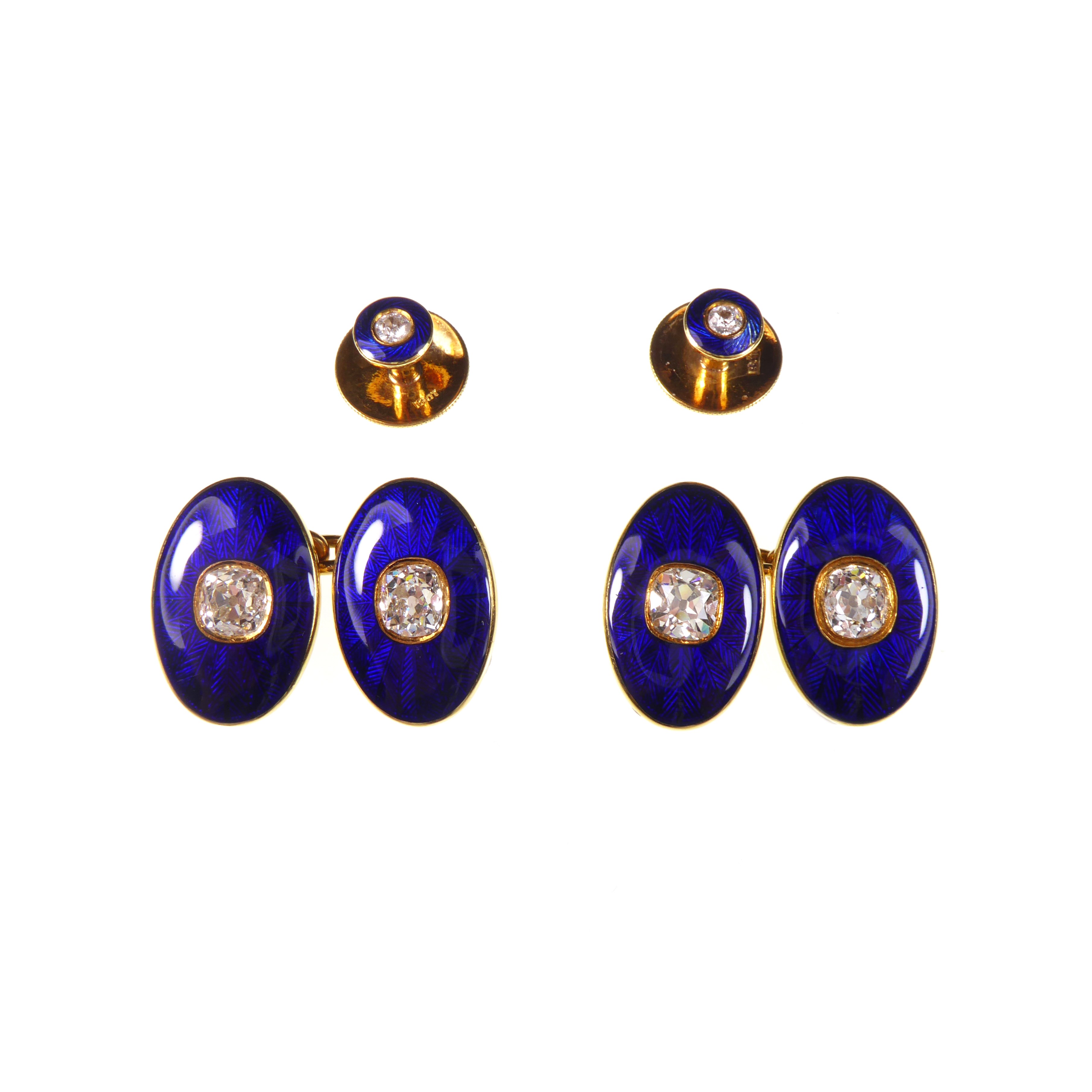 Pair of early 20th century diamond collet stud earrings, c.1910, each old round brilliant cut diamonds of approximately 1.80cts total,