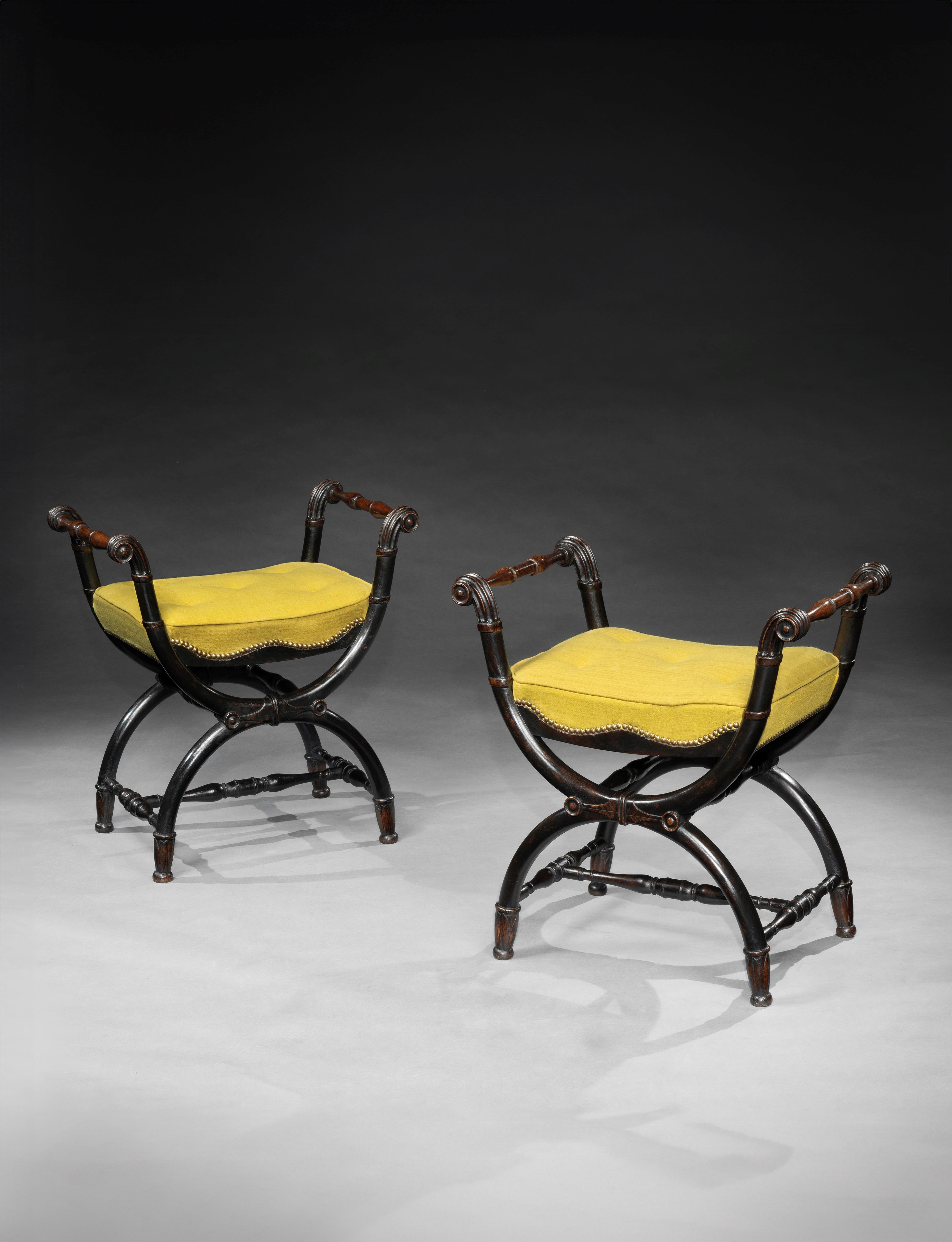 A Pair of Regency Period Ebonised Oak X Framed Stools