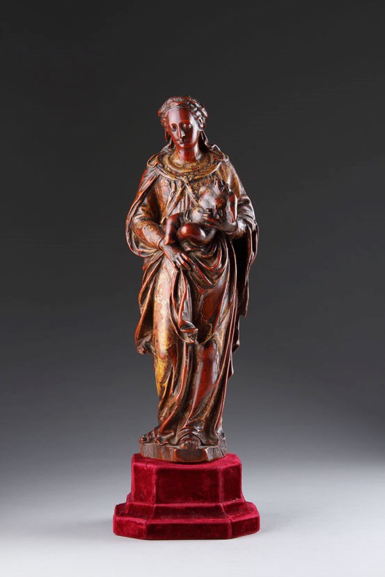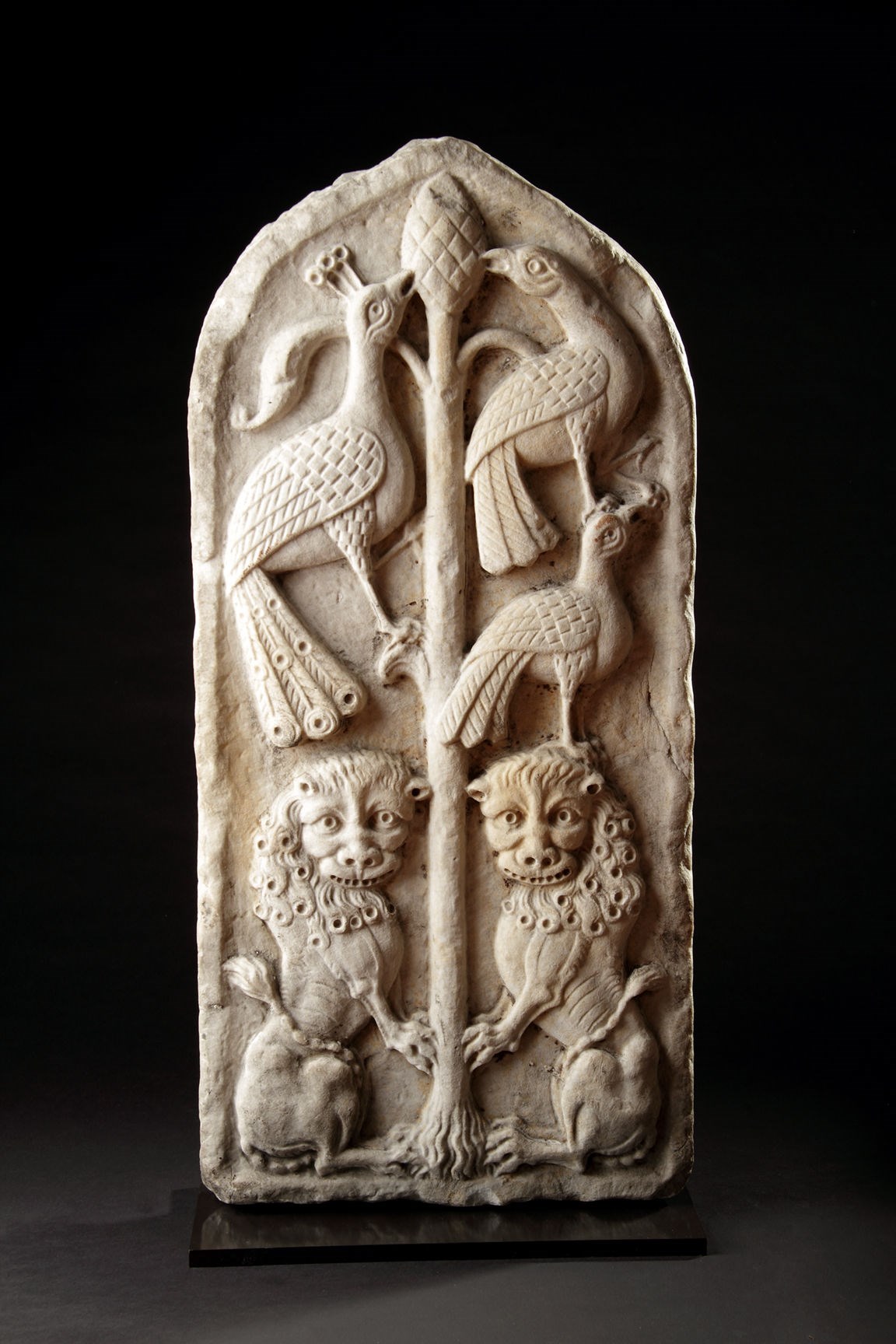 The circular cards are polychromed, featuring various scenes of daily courtly life, battles, and hunting. They are housed in a rectangular box, which is also profusely decorated with hunting scenes and courtly processions