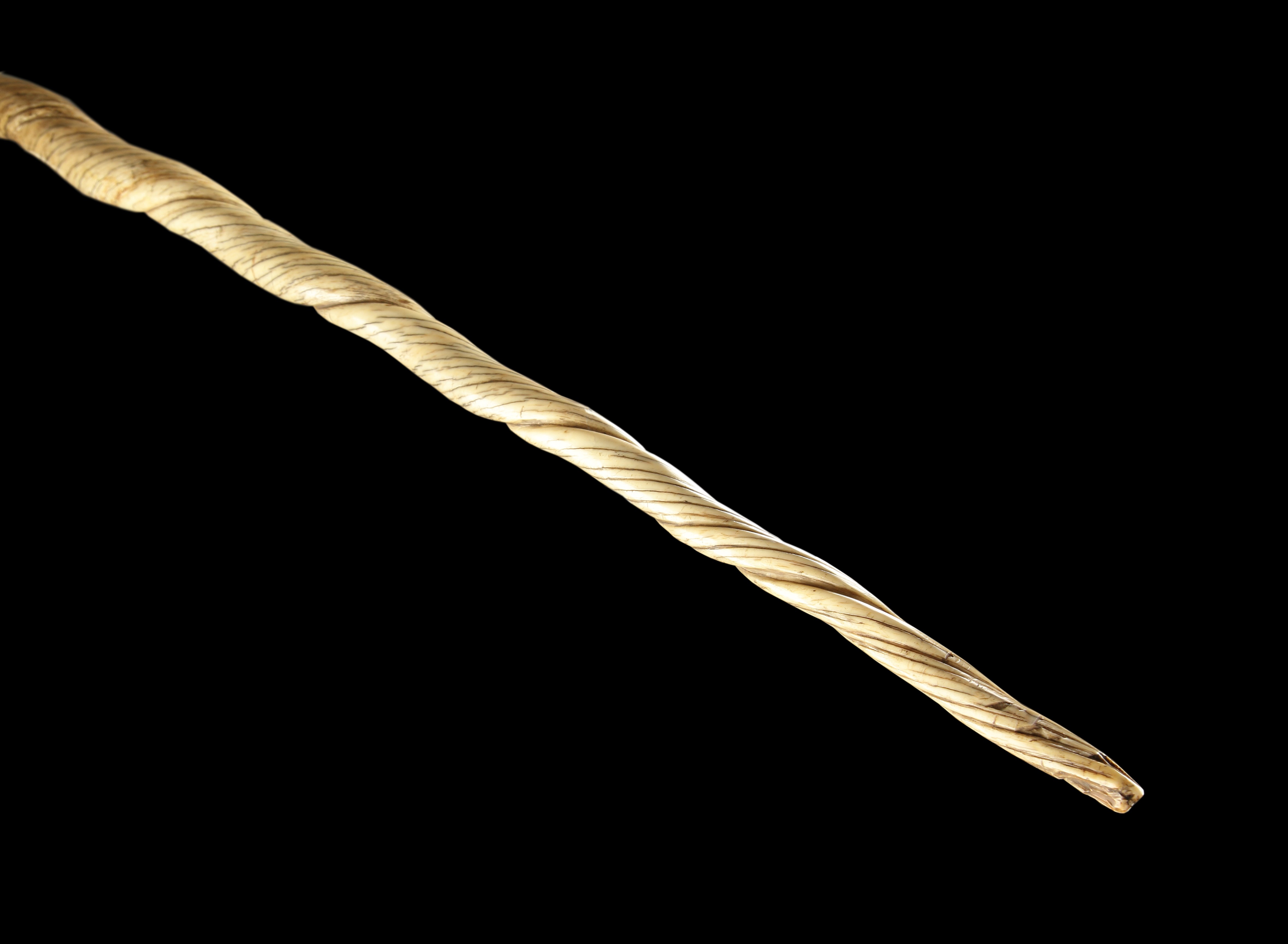 Carved from a single walrus tusk, with Jo standing at the base of a large pine tree, a branch of which forms the cord attachment