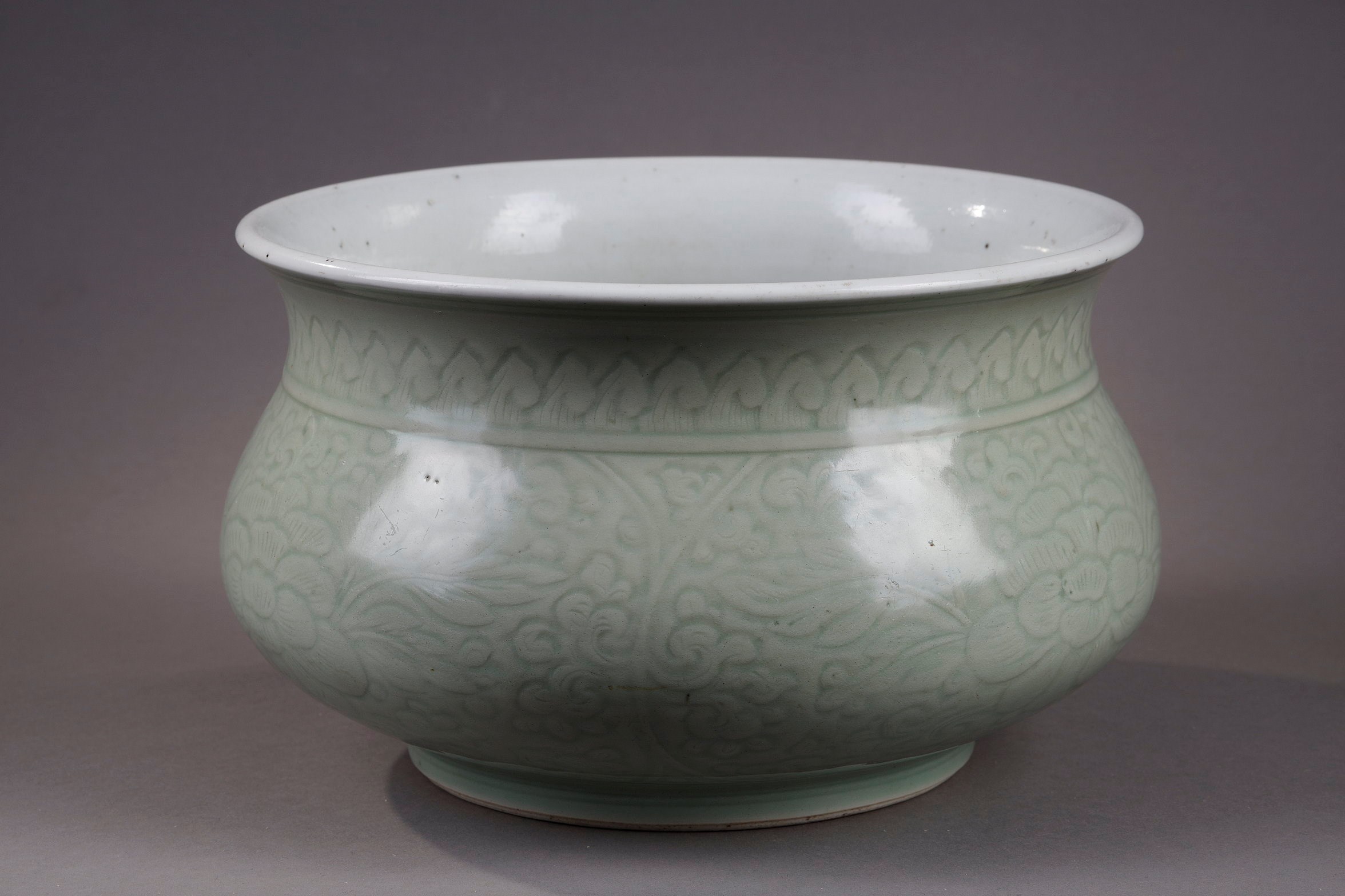 Dish porcelain showing the pressing of apples - Yongzheng period