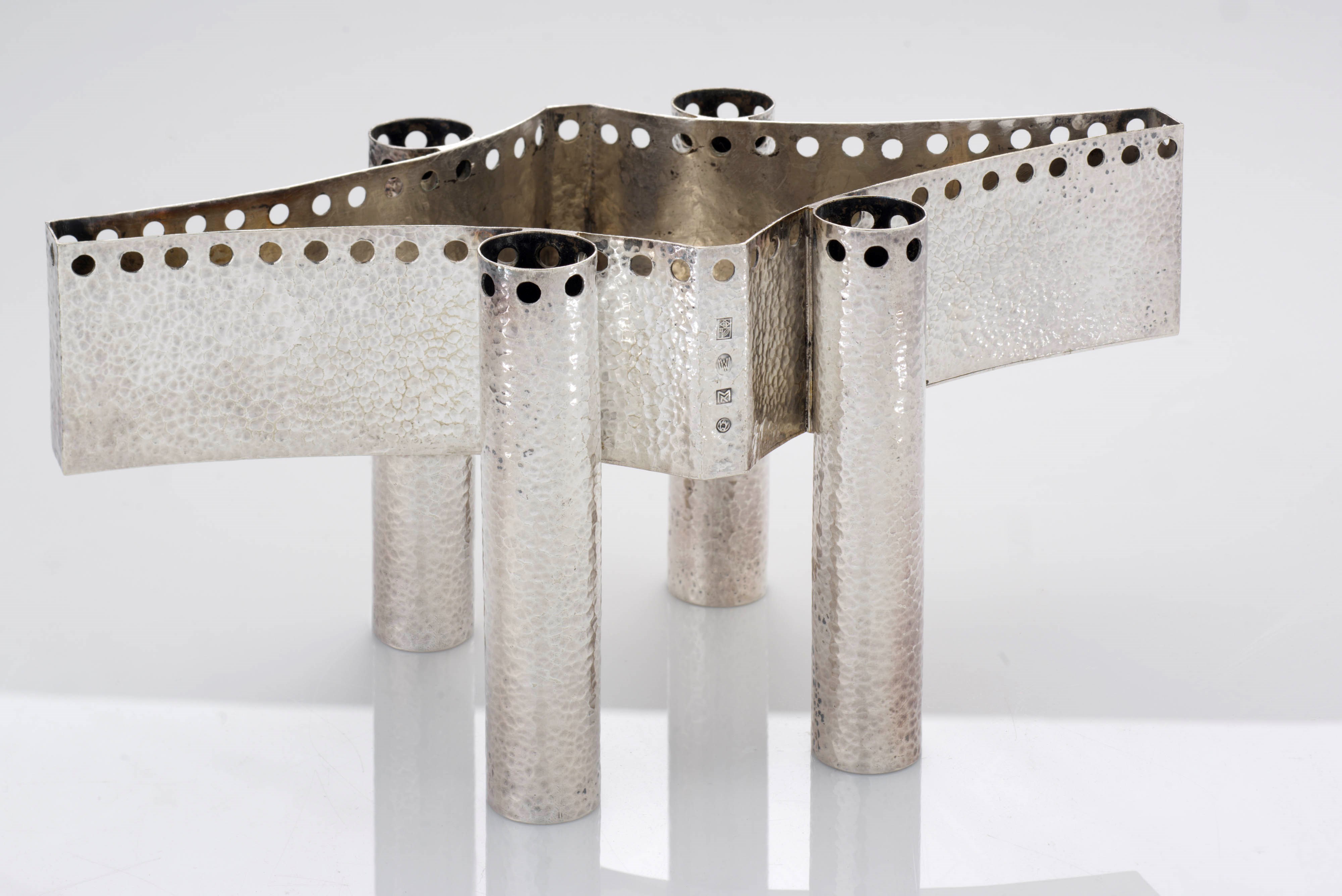 Before Josef Hoffmann had the opportunity since 1903 of having his designs executed in the Wiener Werkstätte's own workshops, he employed the two Viennese silversmith workshops of Würbel and Czokally and Alexander Sturm. Hoffmann's earliest designs in silver were made in their workshops. To the Viennese, their forms must have seemed as alien as if they had landed on earth from another planet. They cannot be compared with anything ever previously produced in Vienna. Averse to any kind of historical allusion, they were created out of the motivation of individual, artistic invention. Inspired by the creativity of an Archibald Knox and the Arts & Crafts philosophy of a Charles Robert Ashbee, they constitute the first manifestation of the new style, which would finally achieve its consummate culmination in the early works of the Wiener Werkstätte. Published for the first time in 1902 in Ver Sacrum, the monthly periodical of the Vienna Secession, they embody its credo of the unity of the arts. No longer merely utensils, they are at the same time sculpture and architecture.