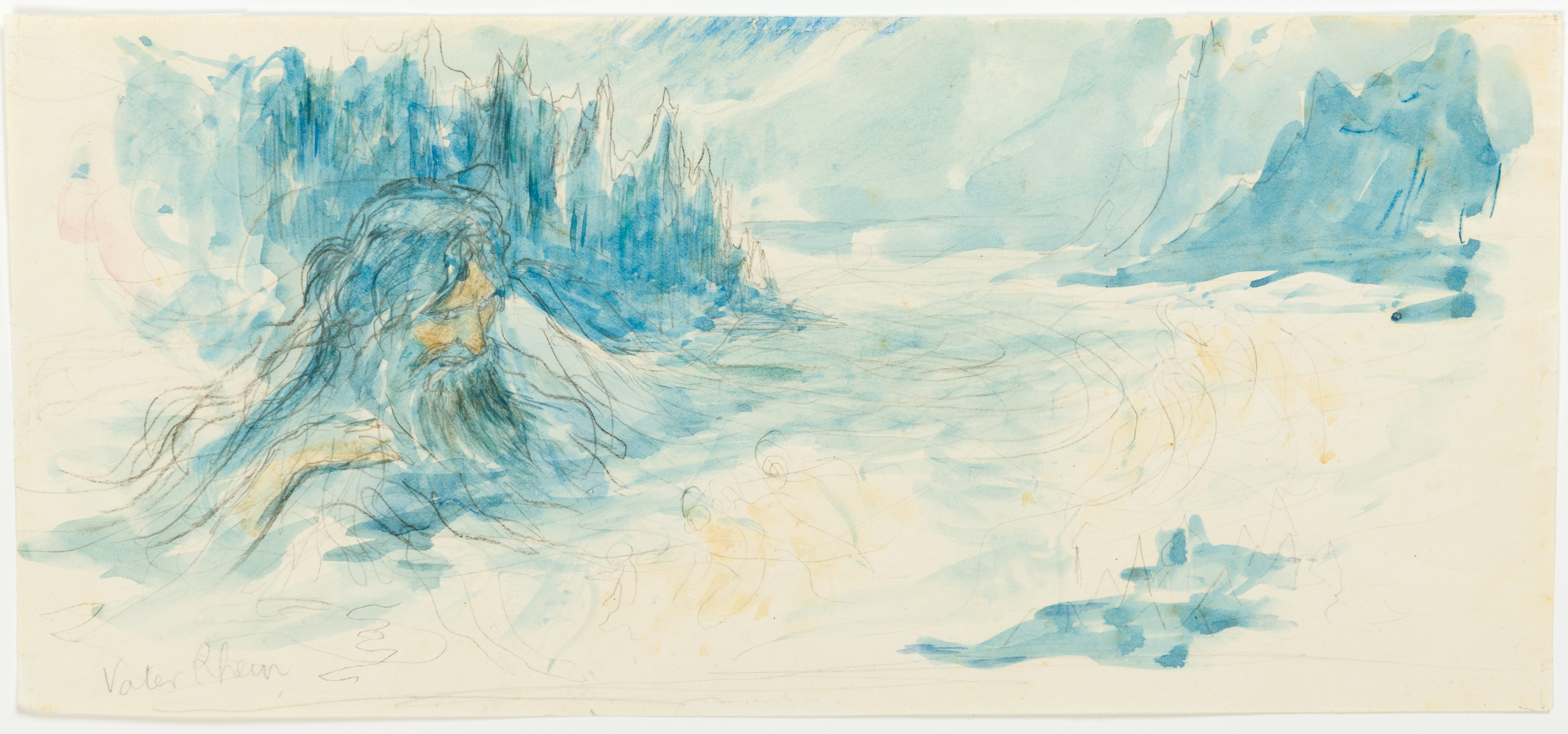 Medium Pen, Brown ink, Brown wash, Heightened with white, Underdrawing in black chalk, On blue paper