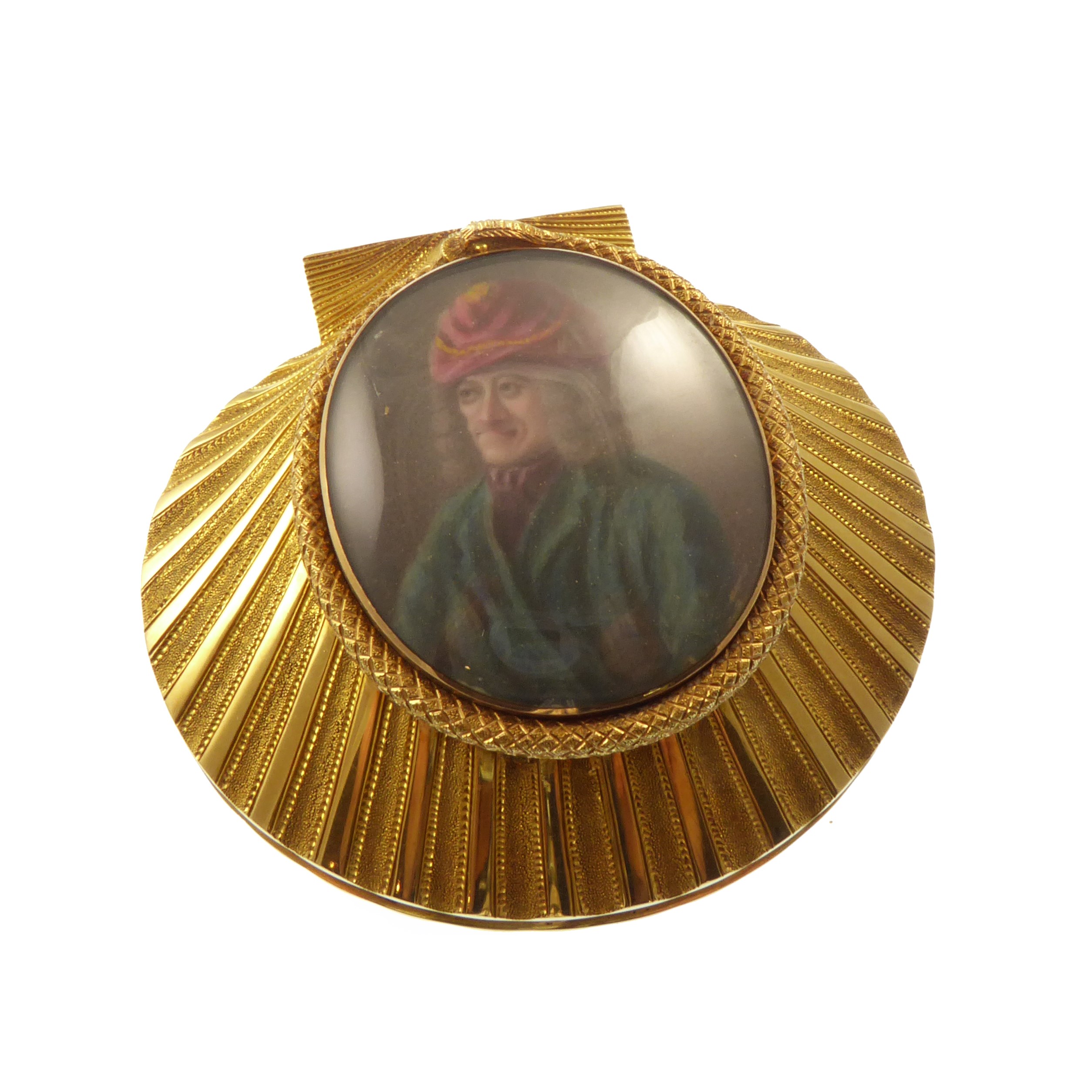 Weight: 8g with purple upper petals and similar to lower petals shading to pinkish-yellow middle, naturalistic markings, an old round brilliant cut diamond claw set to centre, stamped American maker's mark, mounted in 14ct gold, hinged pendant loop to reverse.