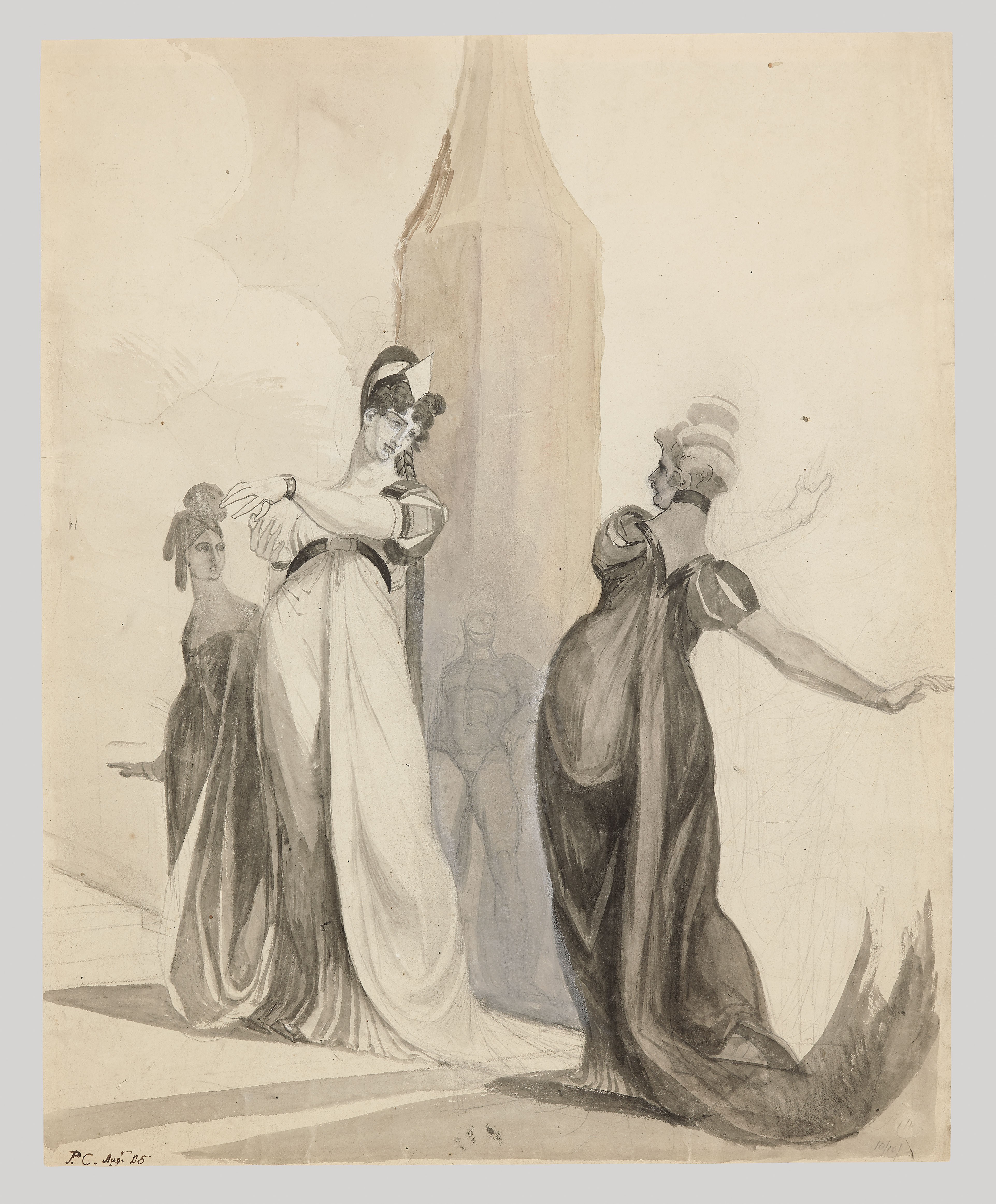 Medium: Pastel, coloured chalks, watercolour and touches of gouache, with a framing line in pencil.