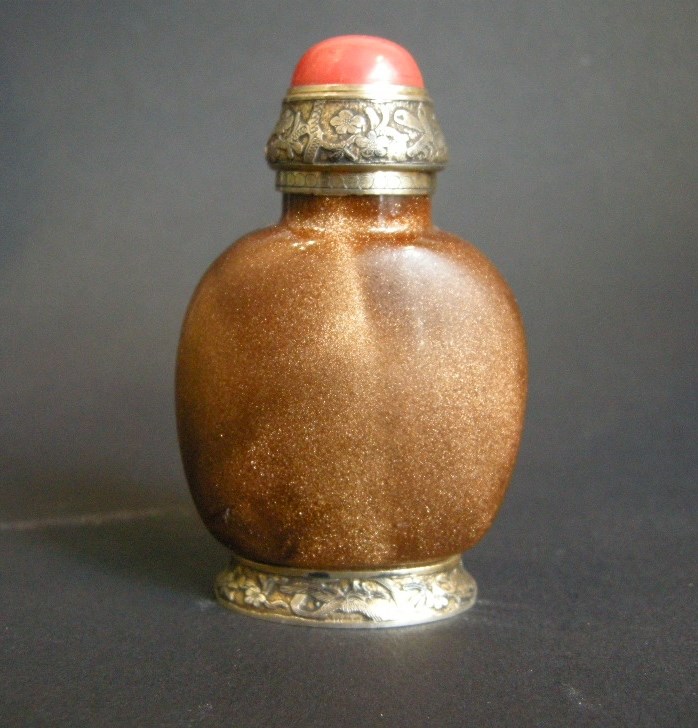Snuff bottle jade nephrite finely engraved with brocade (very well hollowed) (small white spot !!)