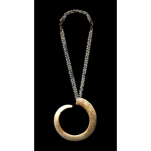A very fine and archaic war-club in the form of a beautifully formed hemisphere at the end of an elongated and hefty shaft. The domed head is superbly polished and smooth with age and wear. The shaft meets under the head as if inserted with a carved in-stepped ring giving the illusion of assembly. The two-stage grip has a small conical hand guard over a wrapping of fiber. Vanuatu, Melanesia. Hard wood with a superb glossy patina. Ex coll. Alex Bernand, Paris/London