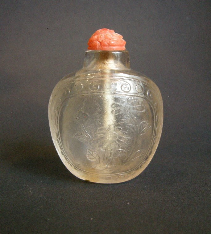 Snuff bottle rock Crystal engraved with bamboo