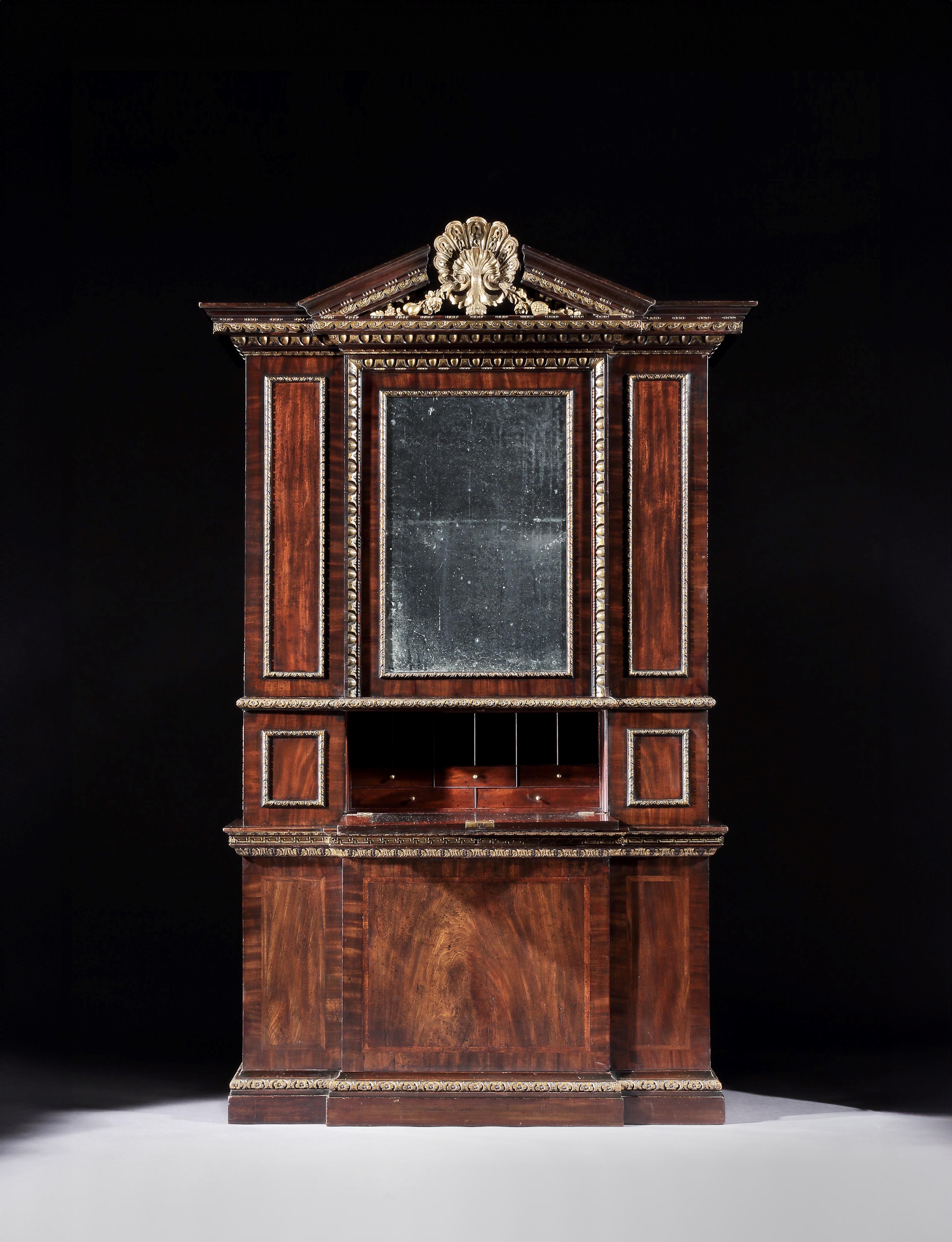 The dished seat veneered with finely figured fiddle back mahogany supported on X framed legs, united by three turned stretchers and mounted with turned paterae.