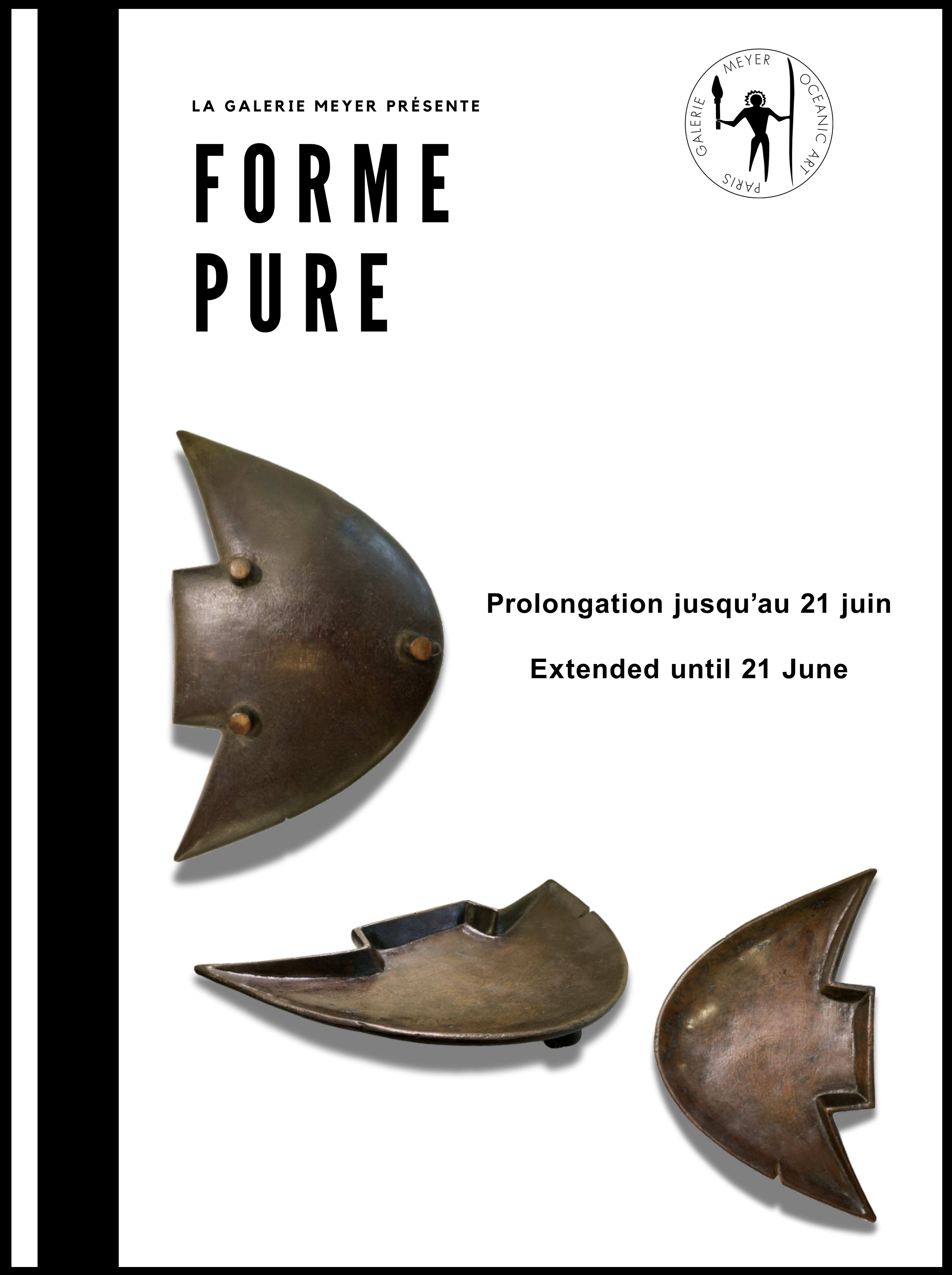 A very fine adze handle completely carved all over with a complex assemblage of geometric, zoomorphic, and anthropomorphic motifs. The handle terminates with a large ancestor head. Murik Lakes and Lower Sepik Bassin, PNG. Wood with a fine reddish coloration and an encrusted patina of age and usage.