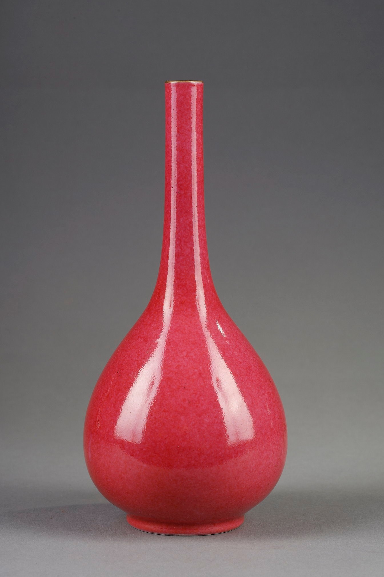 Porcelain snuff bottle finely painted with flowers and rock on a side other sidewith a poem of emperor Qianlong - Imperial mark period Qianlong 1736/1795