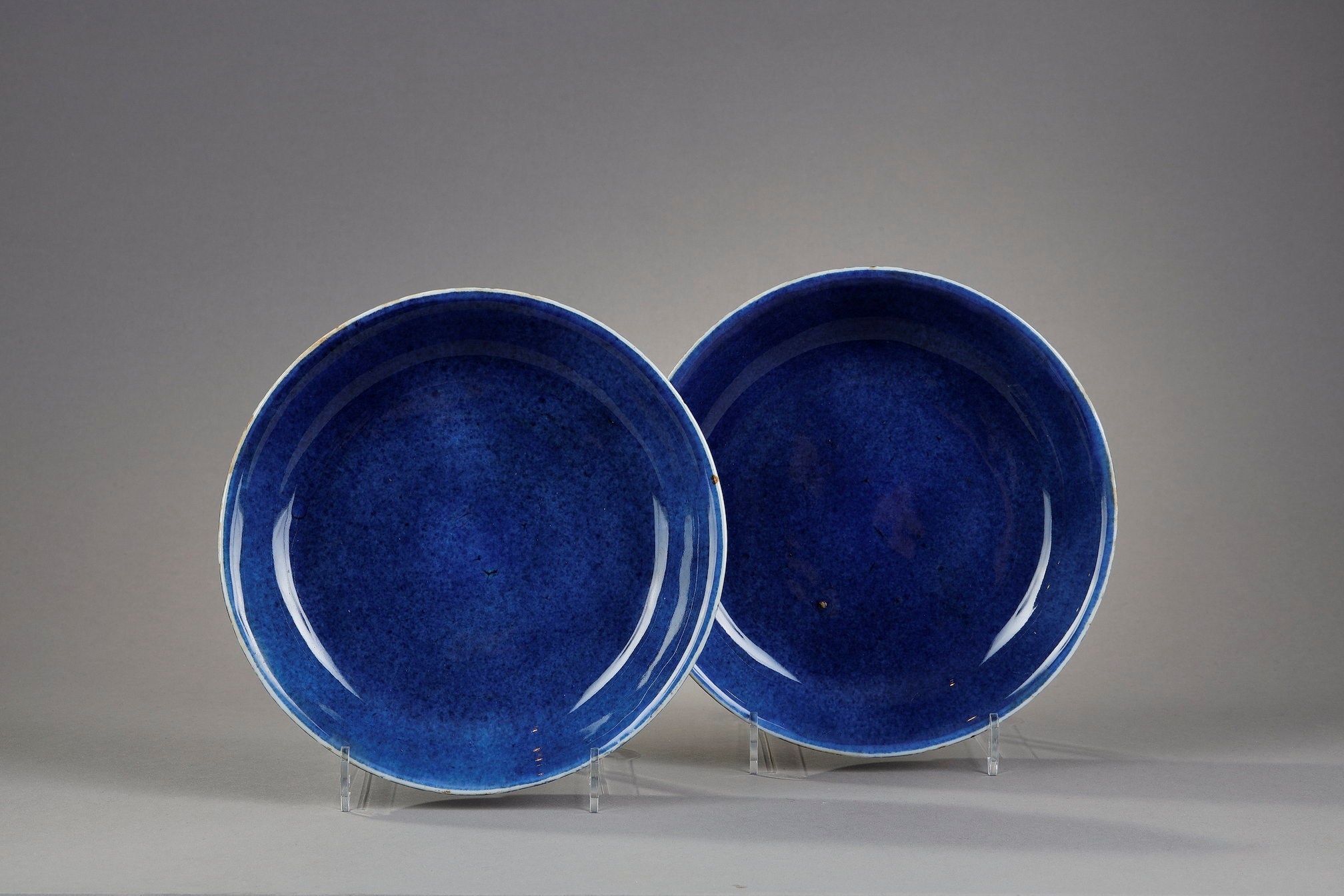 Very large fish bowl in white blue porcelain decorated with two dragons in search of the fiery pearl - China second part of the 19th century diam 62,5cm