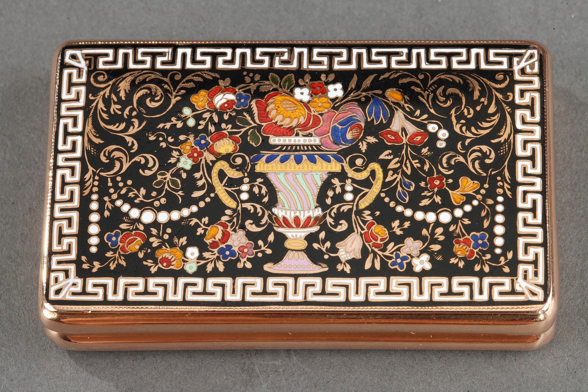 A pair of important ornamental Russian jasper urns with ormolu mounts, provided with scrolling acanthus forming handles, holding heavy draperies falling down on both faces of the paunch. Each vass rests on a circular base very finely chiselled with interlacing, above a square plinth decorated with flowers.