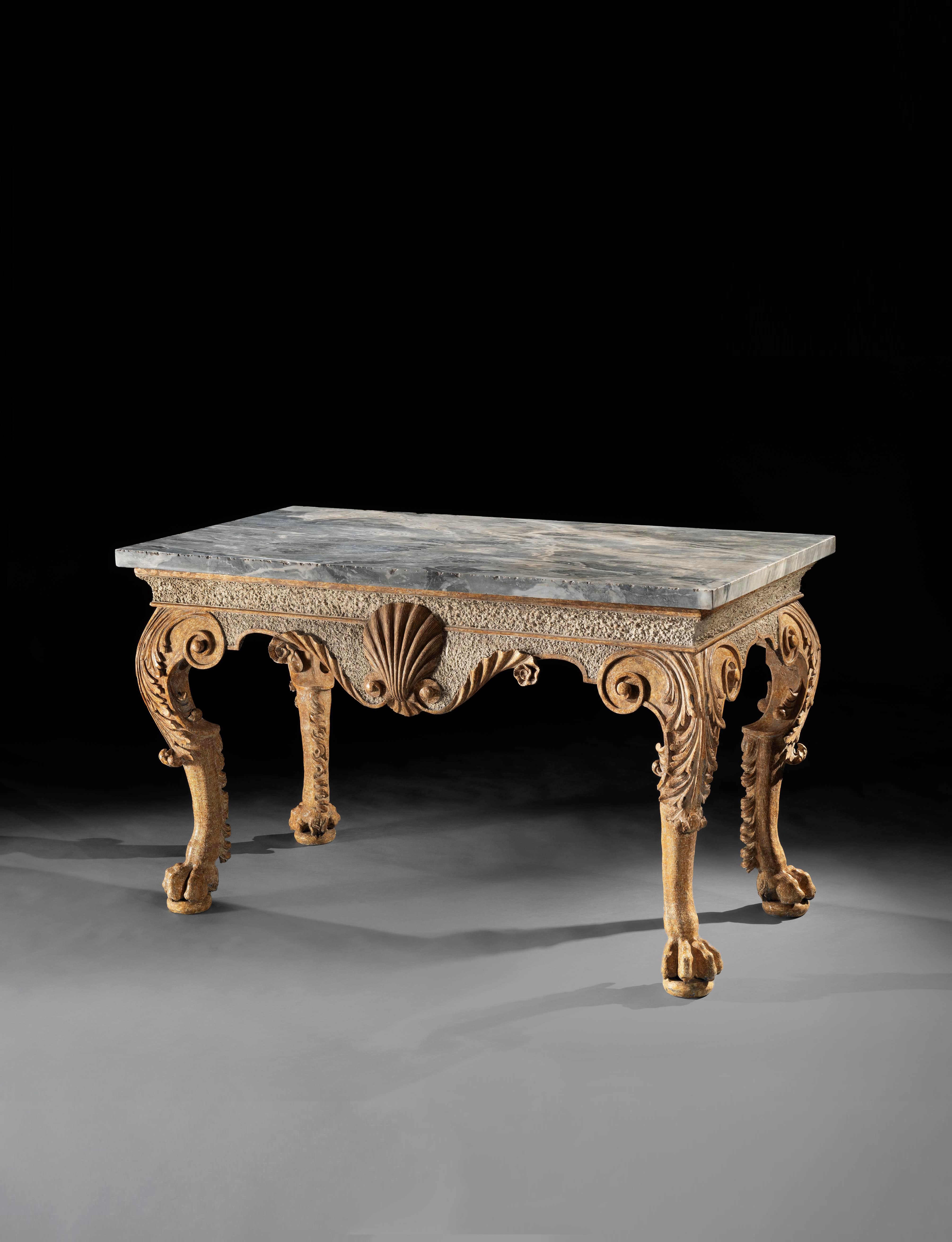 A Regency Period Gilt and Ebonised Centre Table with a specimen marble and micro-mosaic top