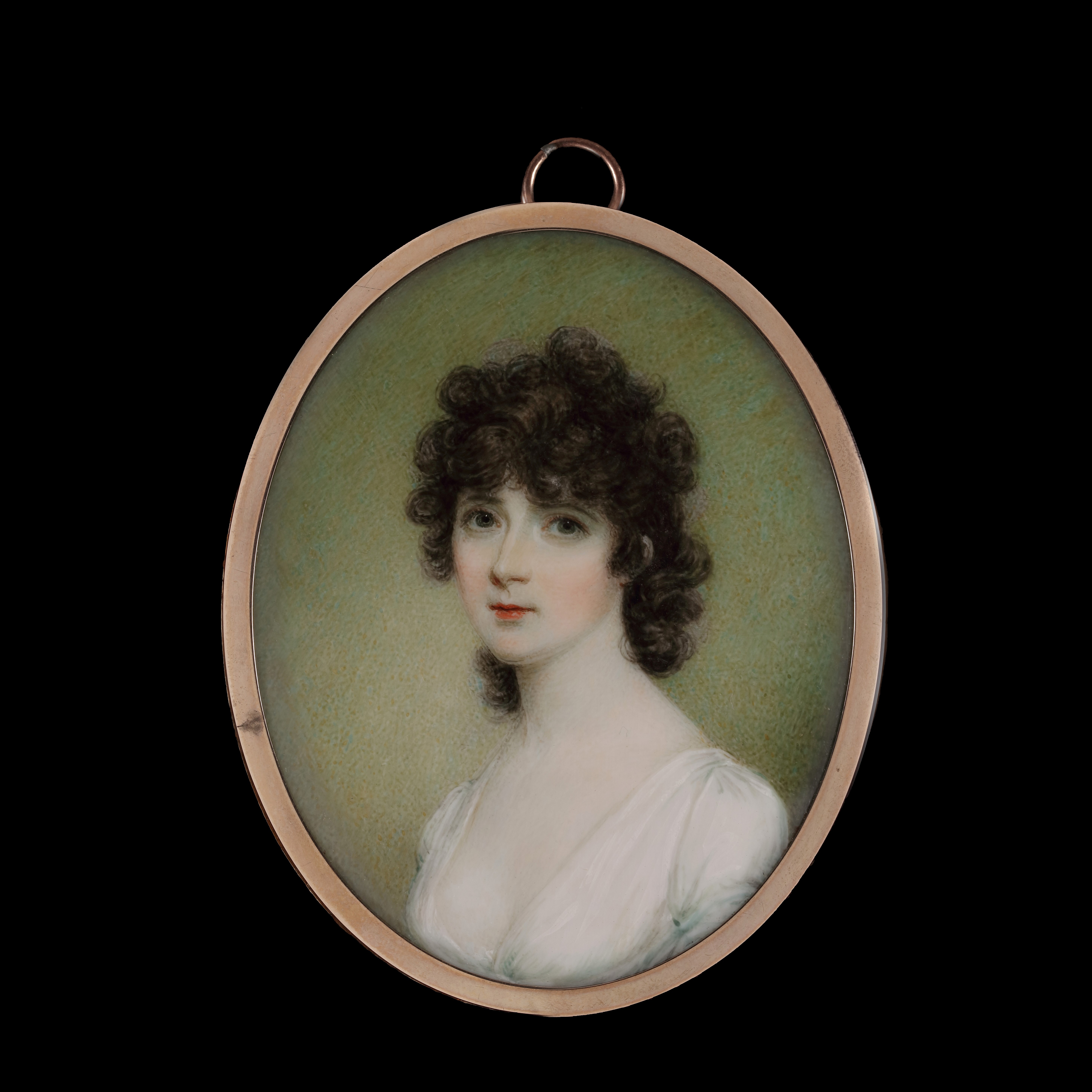 The trio became known due to the questions surrounding their relationship at the time, which has remained a subject of intrigue since. In 2008, the film ‘The Duchess’, featuring Kiera Knightley, Ralph Fiennes, and Hayley Atwell as Elizabeth, was released and follows the relationship from the perspective of Georgiana. For contemporaries, the gaudish and scandalous behaviour, particularly of Georgiana and Elizabeth, was often satirised and the subject of comment. Aside from being involved in this scandal, they were society hostesses, with Georgiana responsible for receptions at Chatsworth. This exposure meant that their relationship became well known in society. Both Elizabeth and Georgiana were painted by numerous important artists from the period, including Angelica Kauffman, who painted Elizabeth only a year before this miniature is presumed to have been painted.