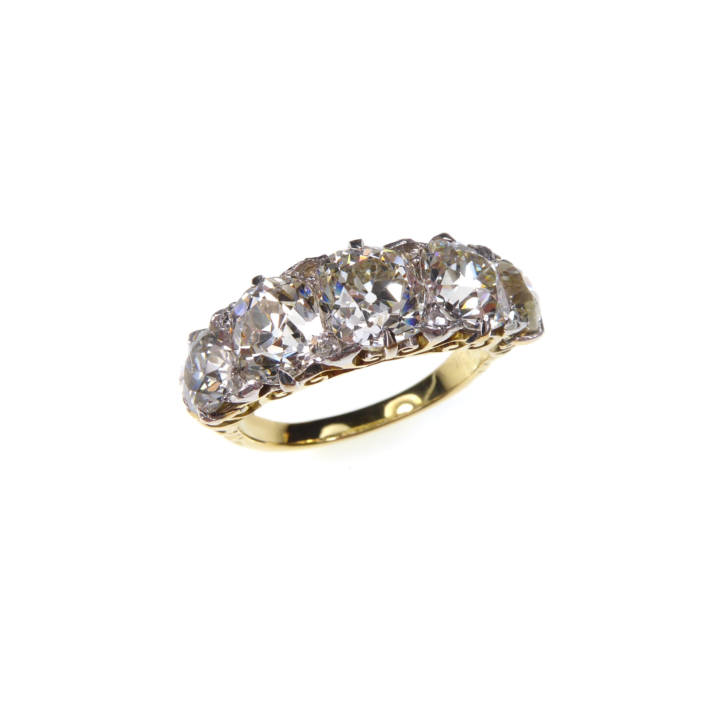 Antique five stone diamond ring, c.1900, with graduated cushion cut stones,
