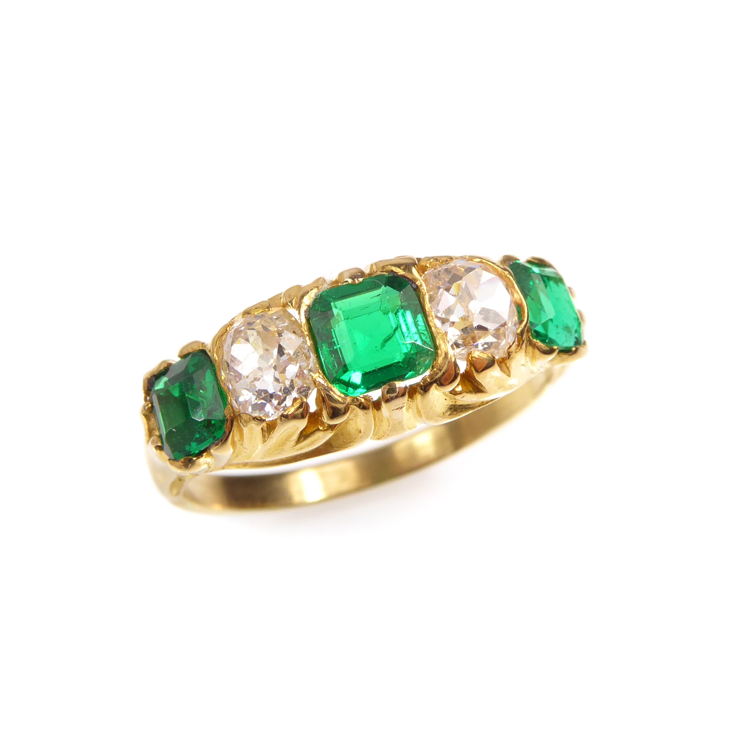 Late 19th century five stone emerald and diamond ring, c.1890,