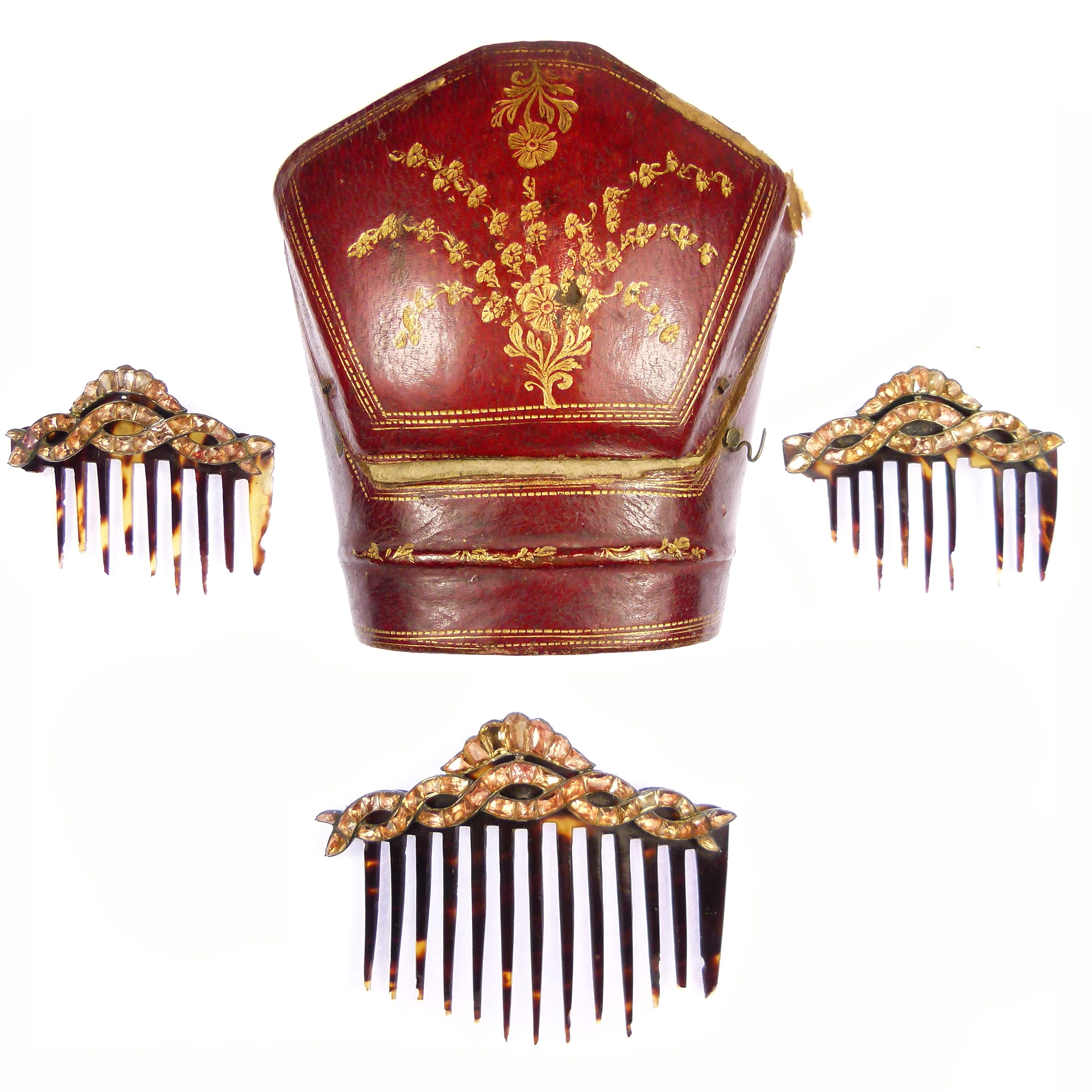 Set of three golden orange topaz graduated hair combs, one large and two small