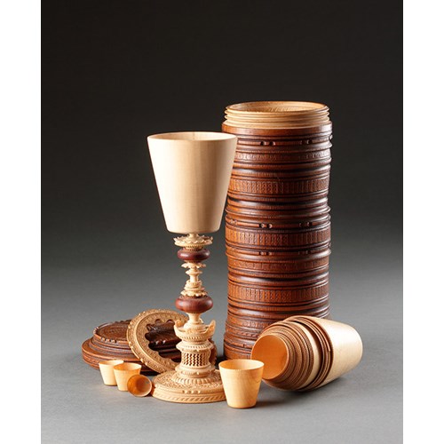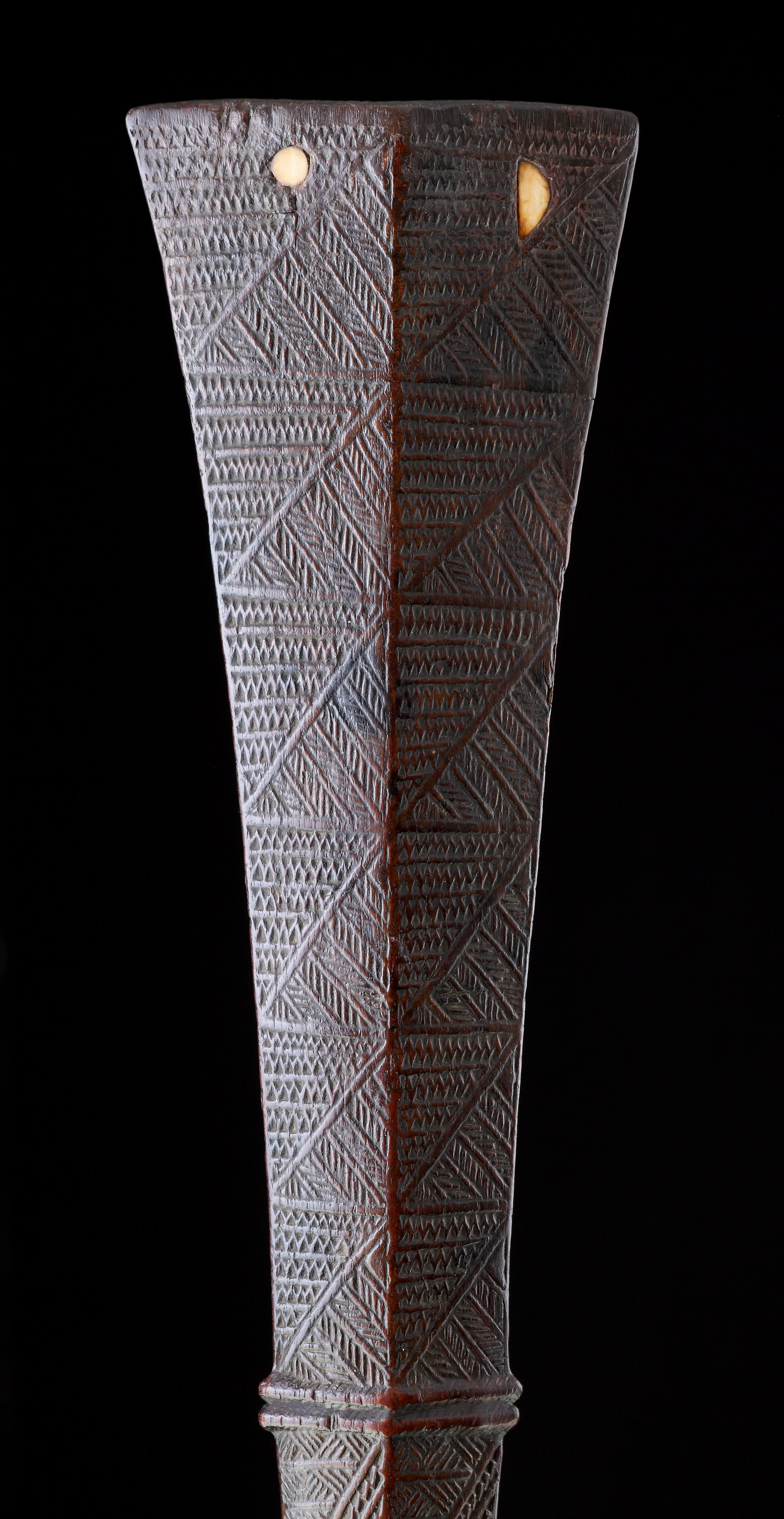 Literature: Remarkably complete, this long staff is carved from one piece of ‘red ivory’ wood which was prized and favoured by the artists of the region for use in staffs made for important men of rank. They have been attributed to an itinerant Tsonga craftsman working in the Zulu kingdom during the late 19th century in the area of Durban or Pietermaritzburg.