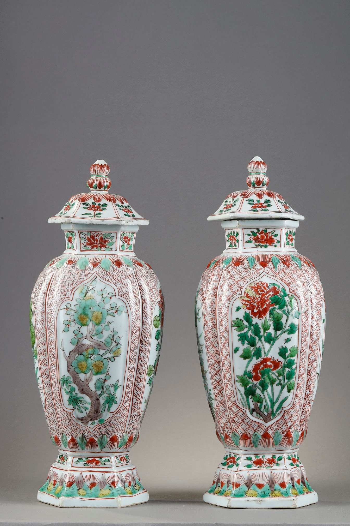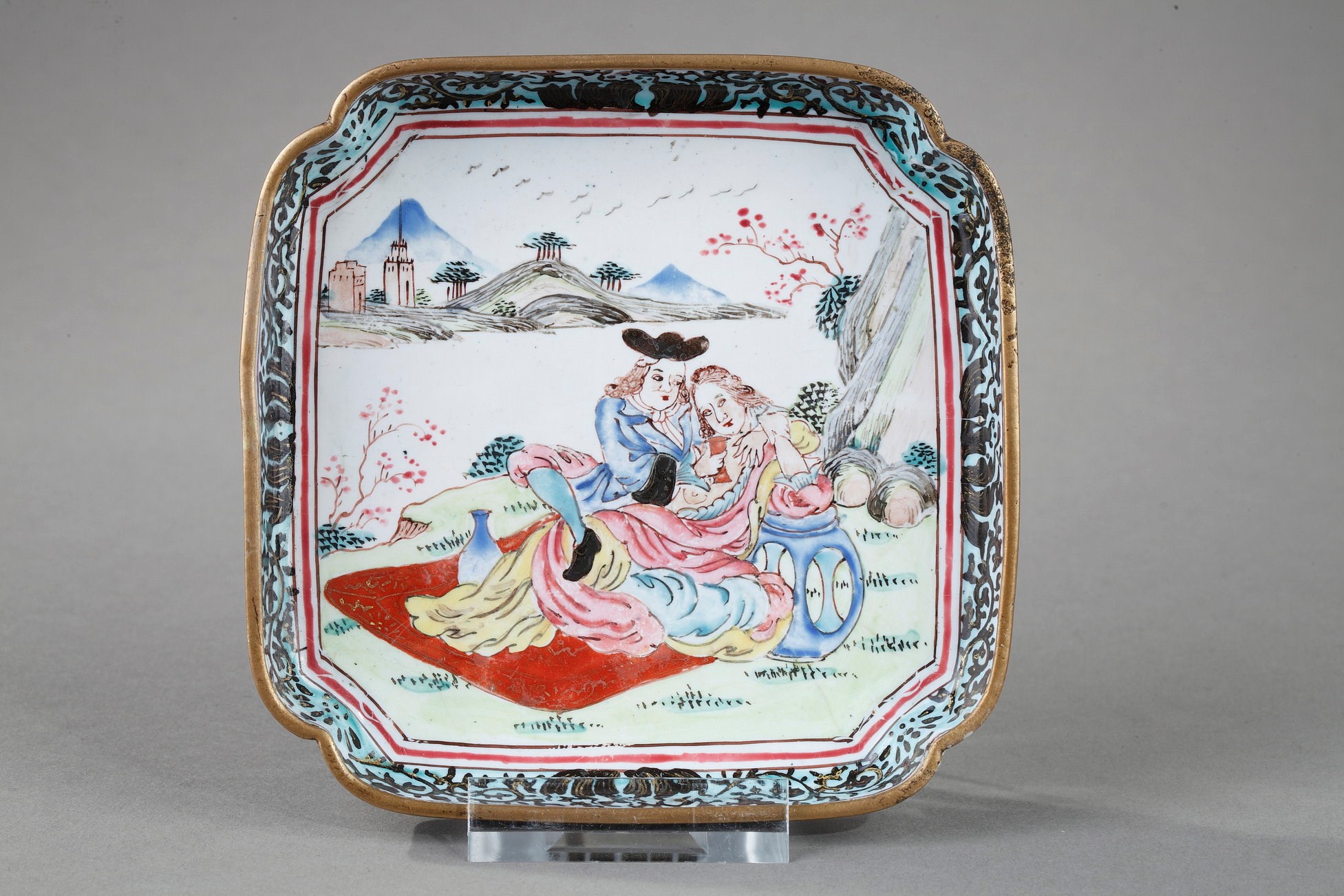 Glass snuff bottle perfectly imitating the amethyst decorated with a sage holding a prunus branch next to a duck and on the other side of a prunus overflown by a bird. 1780/1820